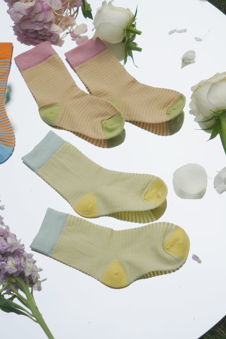 Keep little feet cozy and stylish all season long! Our Cozy Cotton Kids Striped Socks are made from a soft, breathable cotton blend that provides warmth, stretch, and all-day comfort.