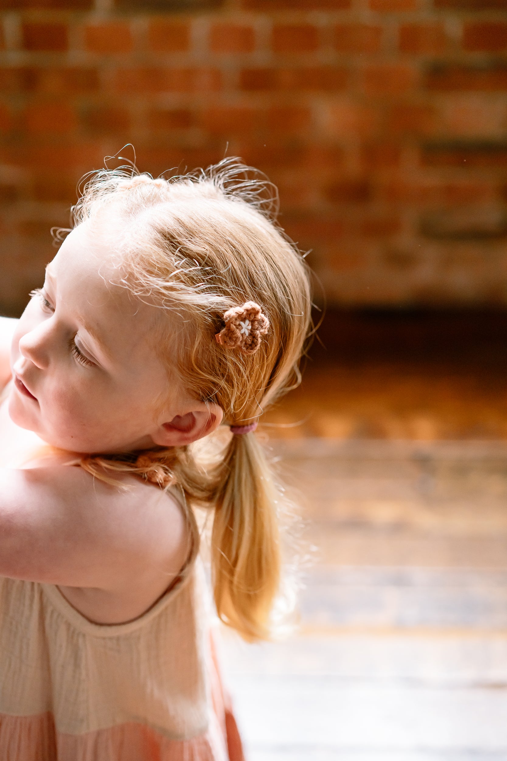 A sweet and simple hair clip featuring a soft crochet star — lightweight, comfortable, and easy to wear. Designed with a gentle palette in Light Star Blue and Rose Pink, it brings a subtle handmade touch to everyday outfits or special occasions.