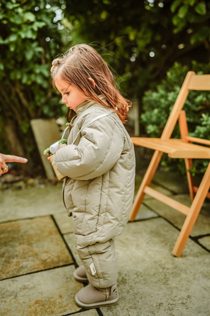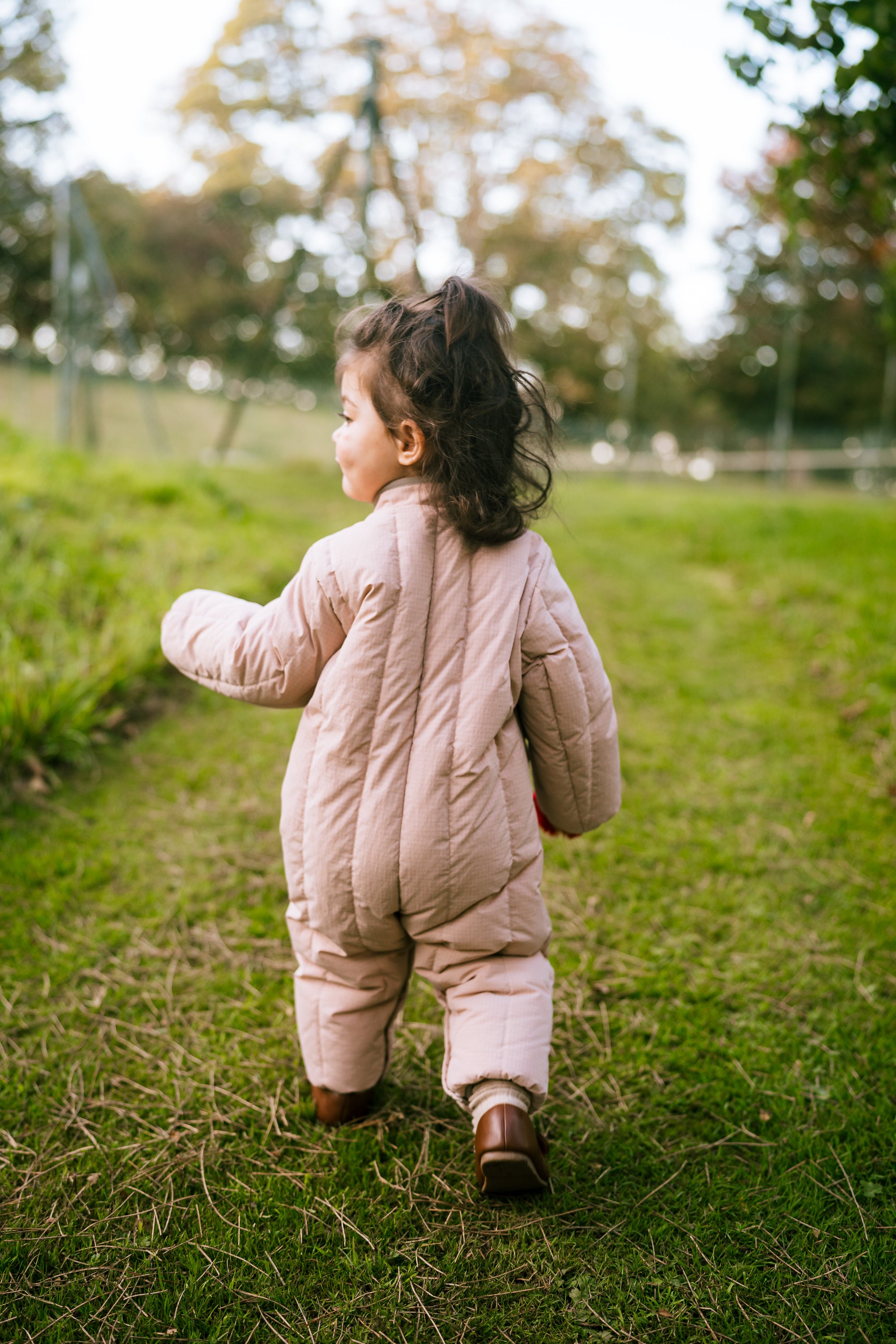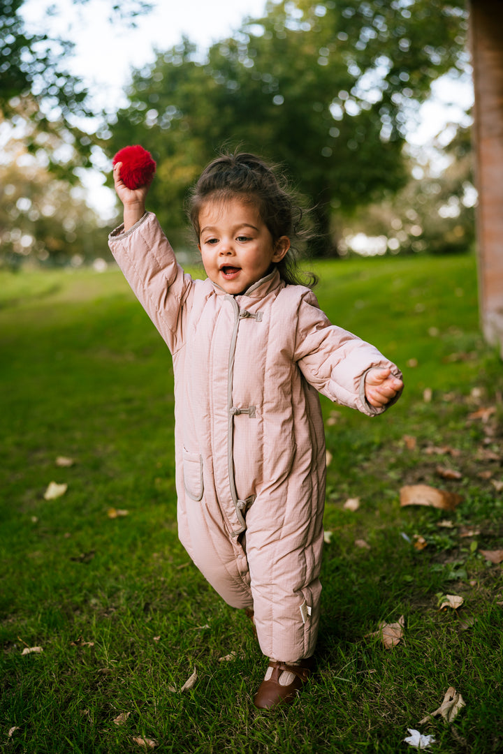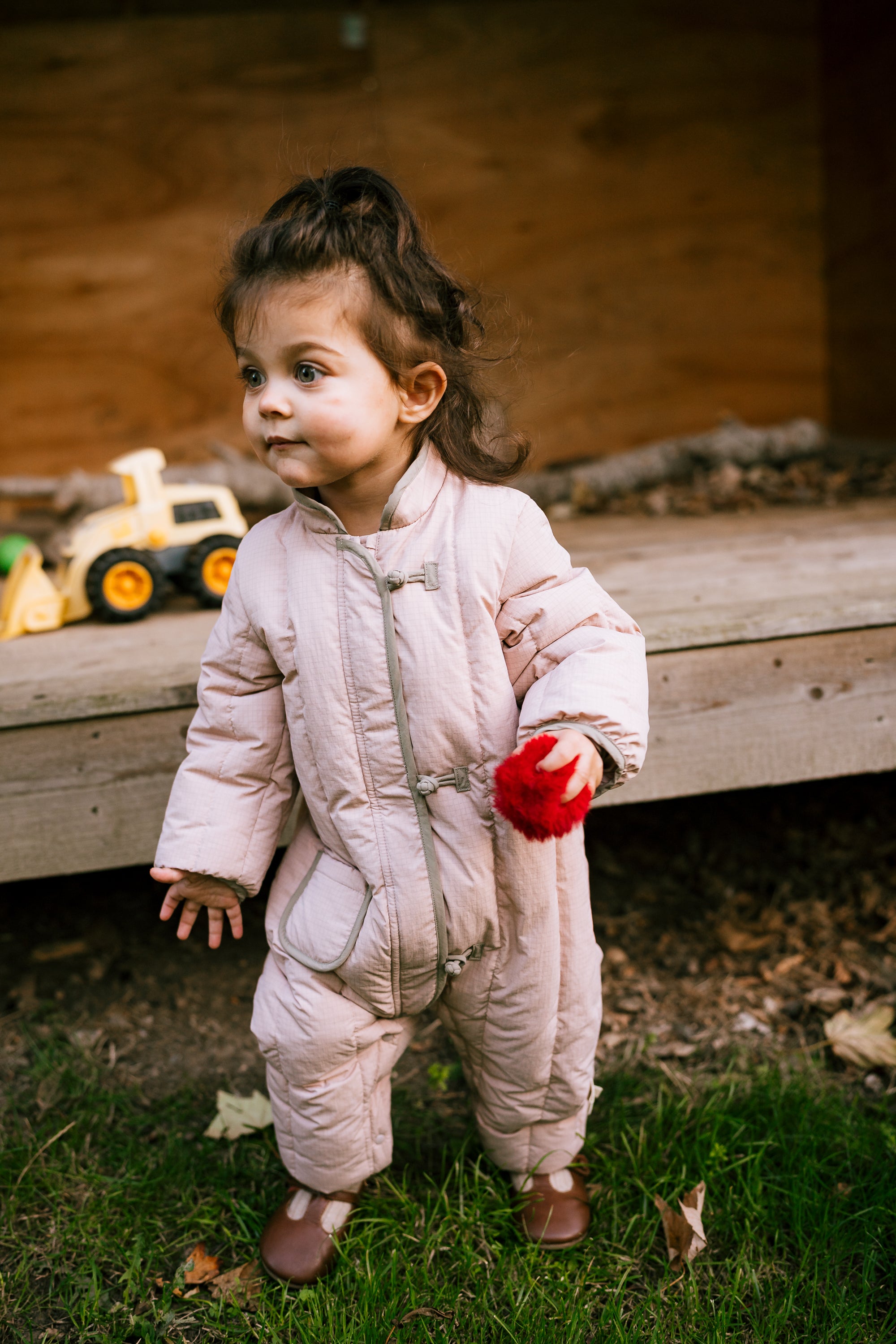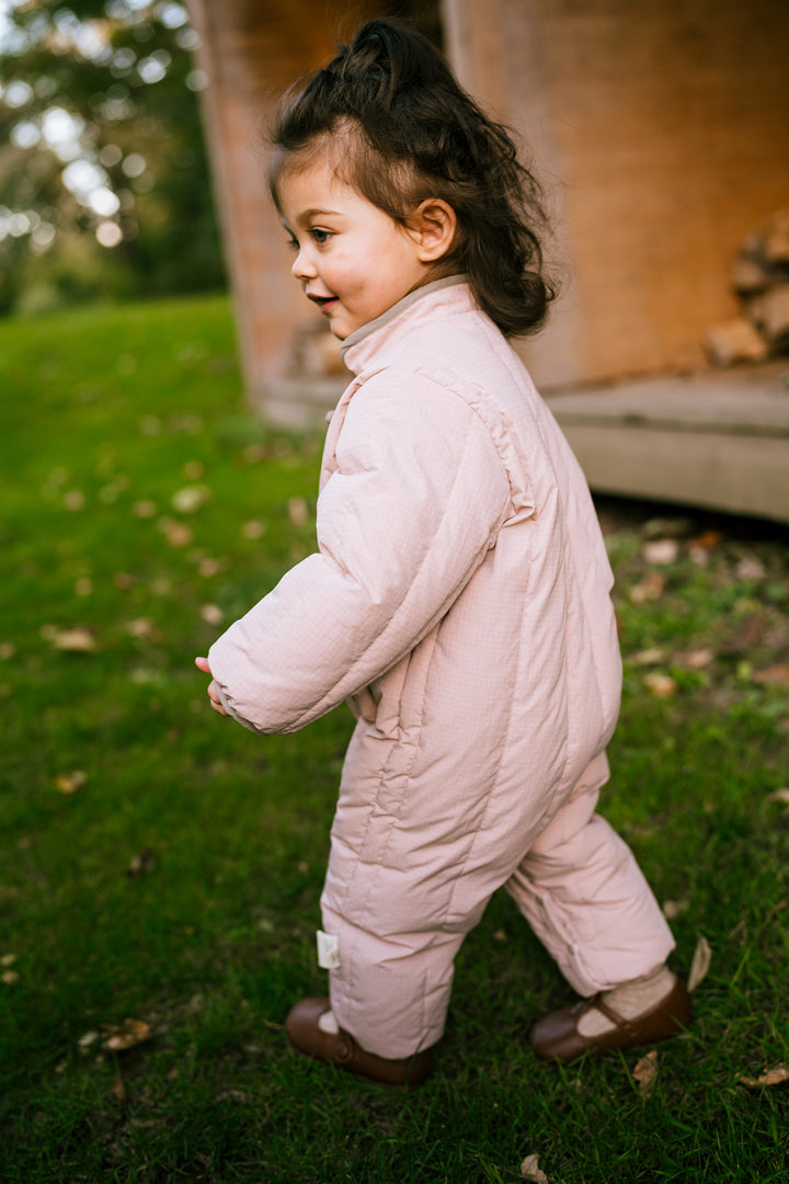 Wrap your little one in cozy warmth with our hoodless baby solid-color down snowsuit. Crafted from durable, wind- and water-resistant nylon and lined with soft polyester, it keeps your baby comfortable during chilly winter days.