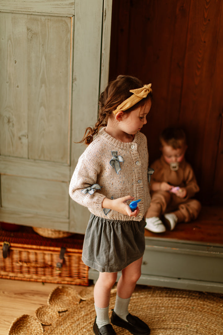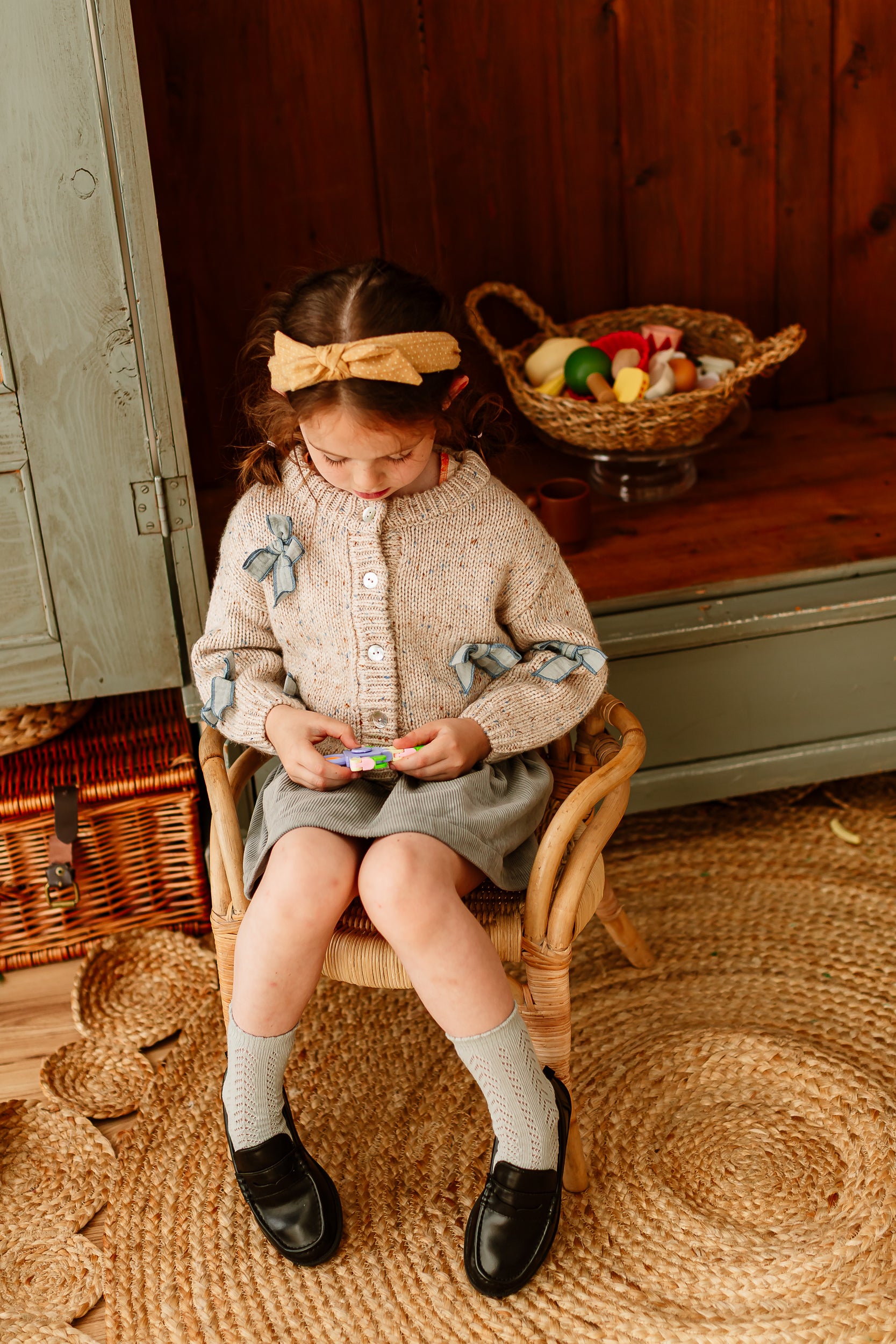 Add a touch of elegance to your fall and winter wardrobe with the Bow Wool Knit Cardigan. Crafted from soft wool, this cozy cardigan features a charming bow detail that adds a playful yet sophisticated twist. Perfect for layering over casual outfits or dressing up for special occasions, it offers both warmth and style in one versatile piece.
