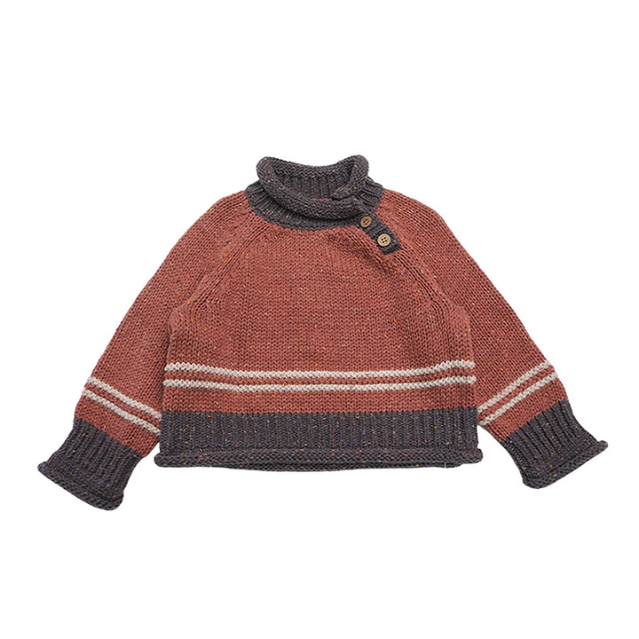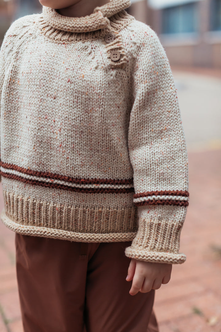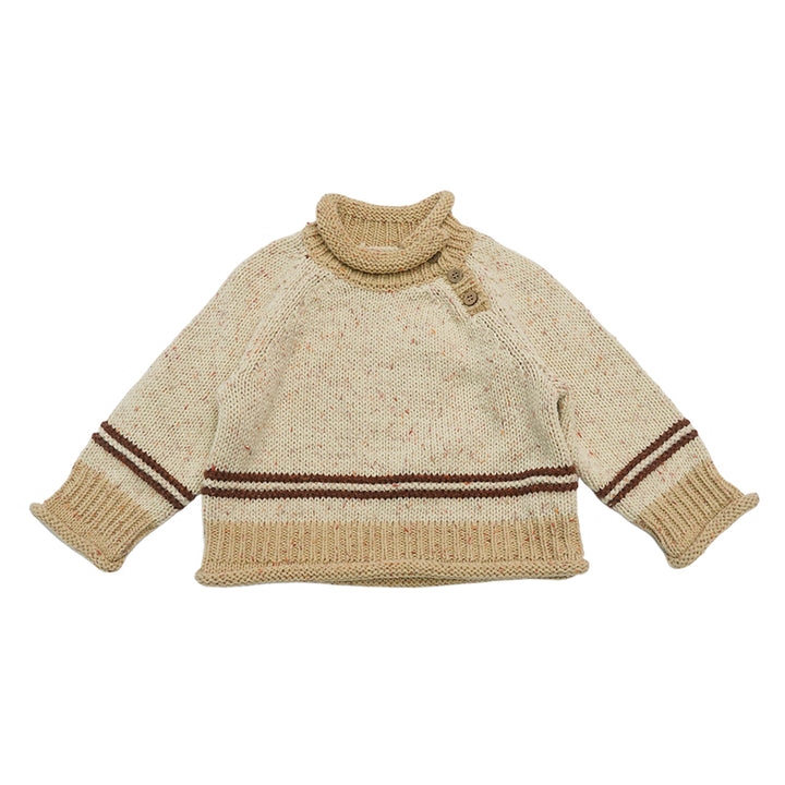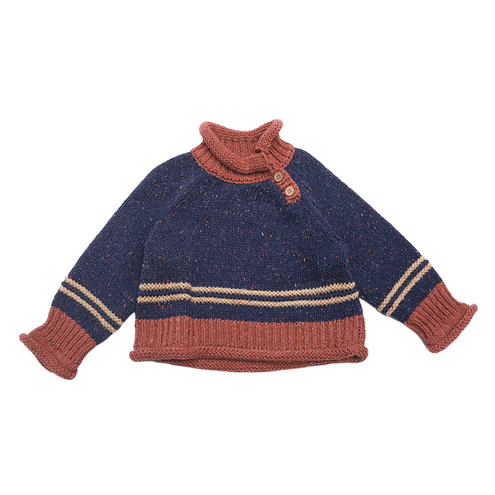A playful and cozy knit sweater crafted from a soft wool-blend mix. The colorblock design features multicolored flecks for a cheerful, textured effect. Perfect for layering over shirts or pairing with skirts and trousers, it brings warmth and style to everyday wear.