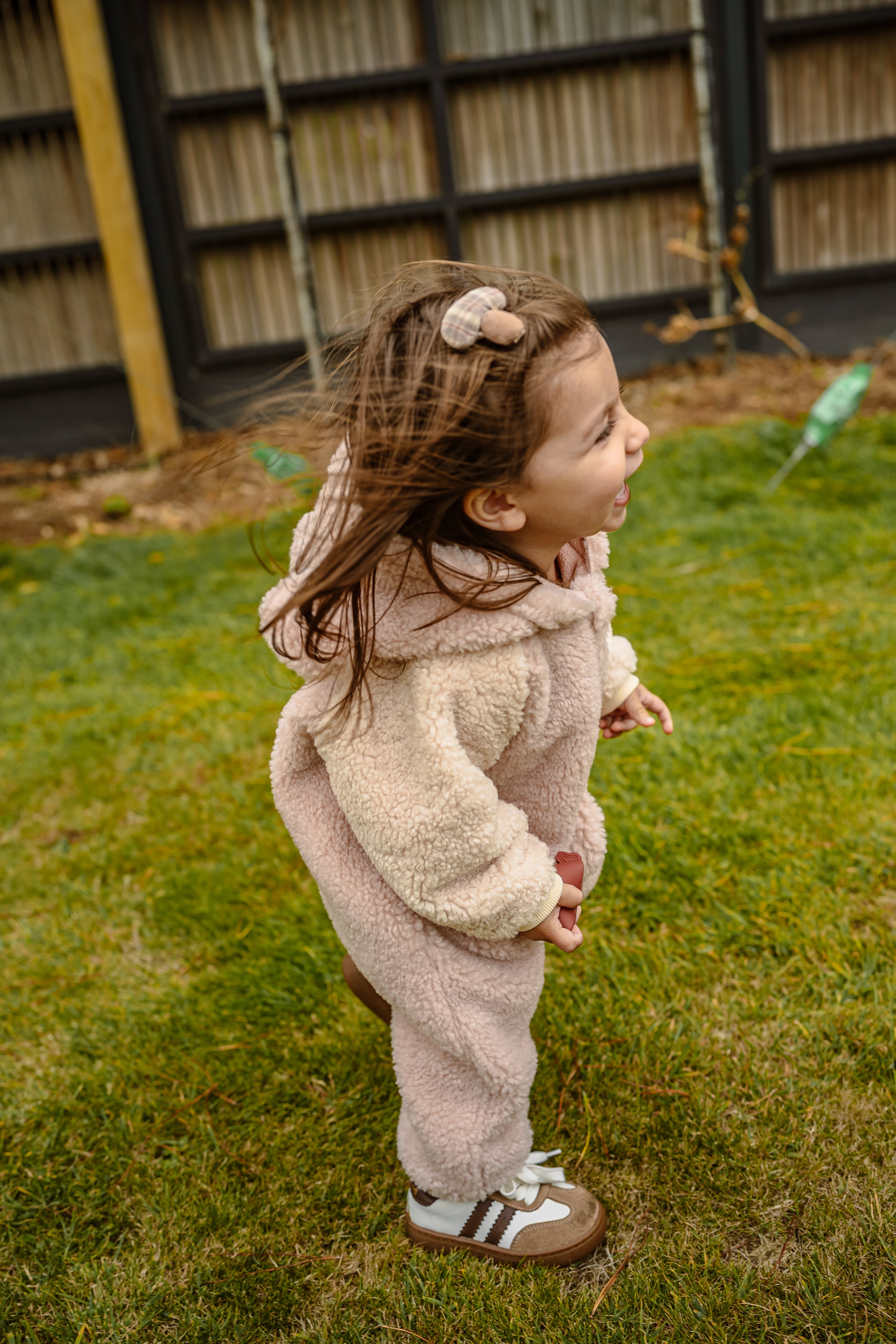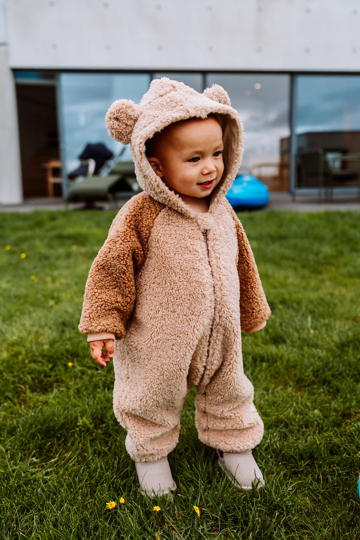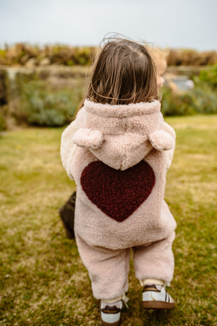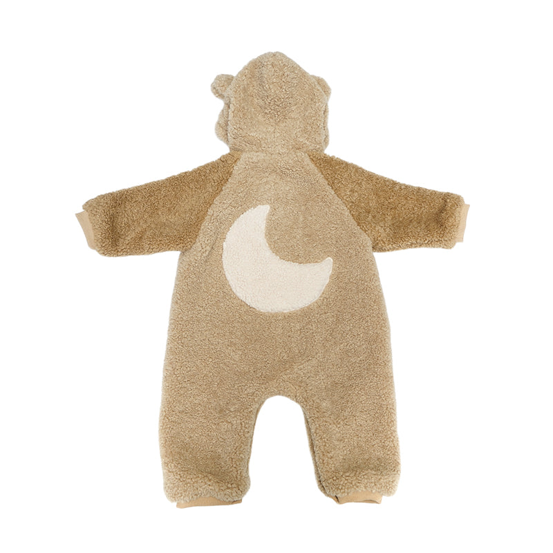 Crafted from plush sherpa fleece, this baby jumpsuit keeps your little one snug and comfortable all season long. The soft, fluffy texture feels gentle against delicate skin, while the moon and heart motifs on the back add a touch of sweetness. Designed for warmth and ease, it’s perfect for cuddly indoor days or chilly outdoor strolls.