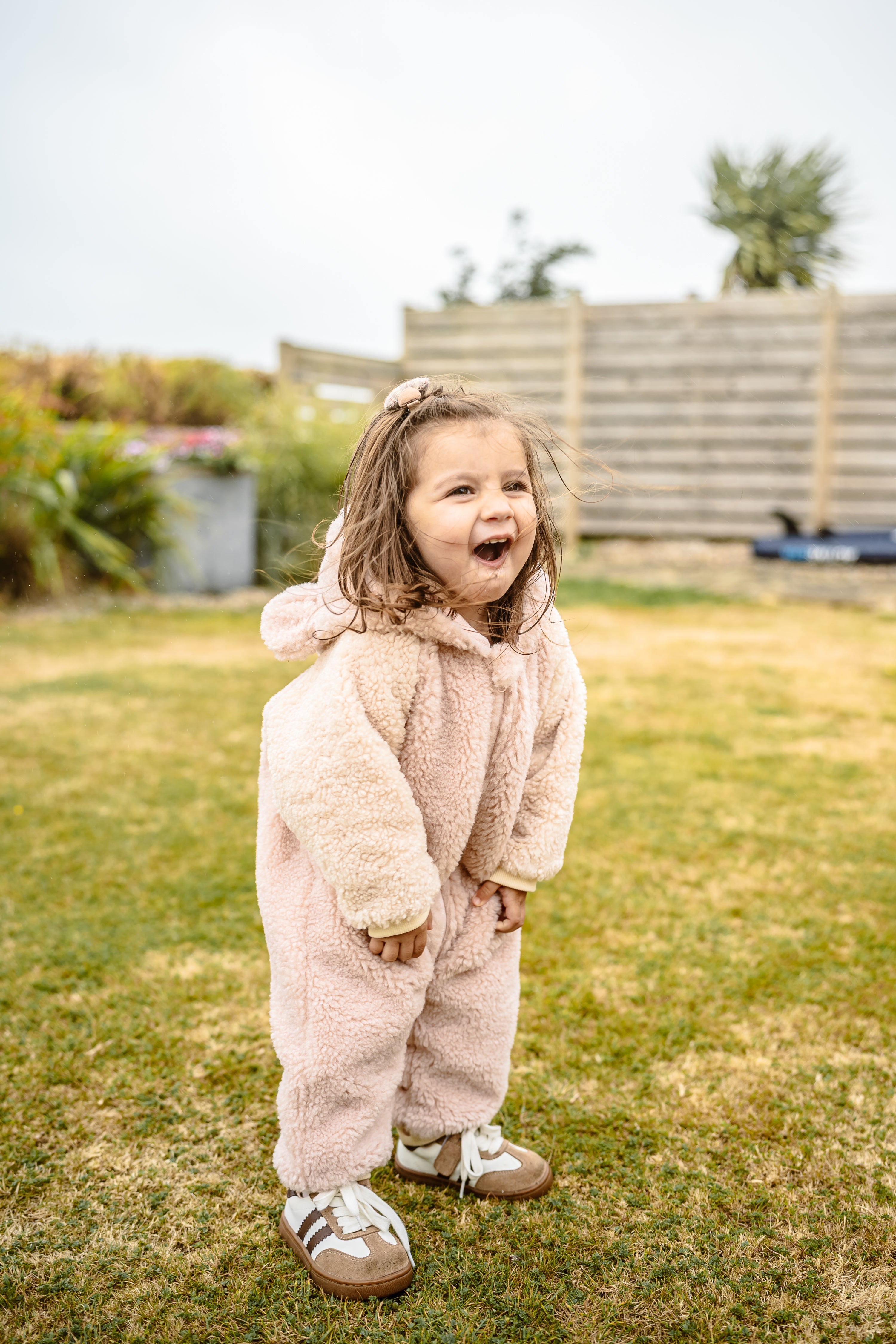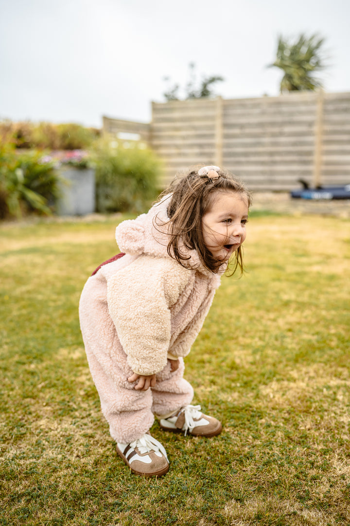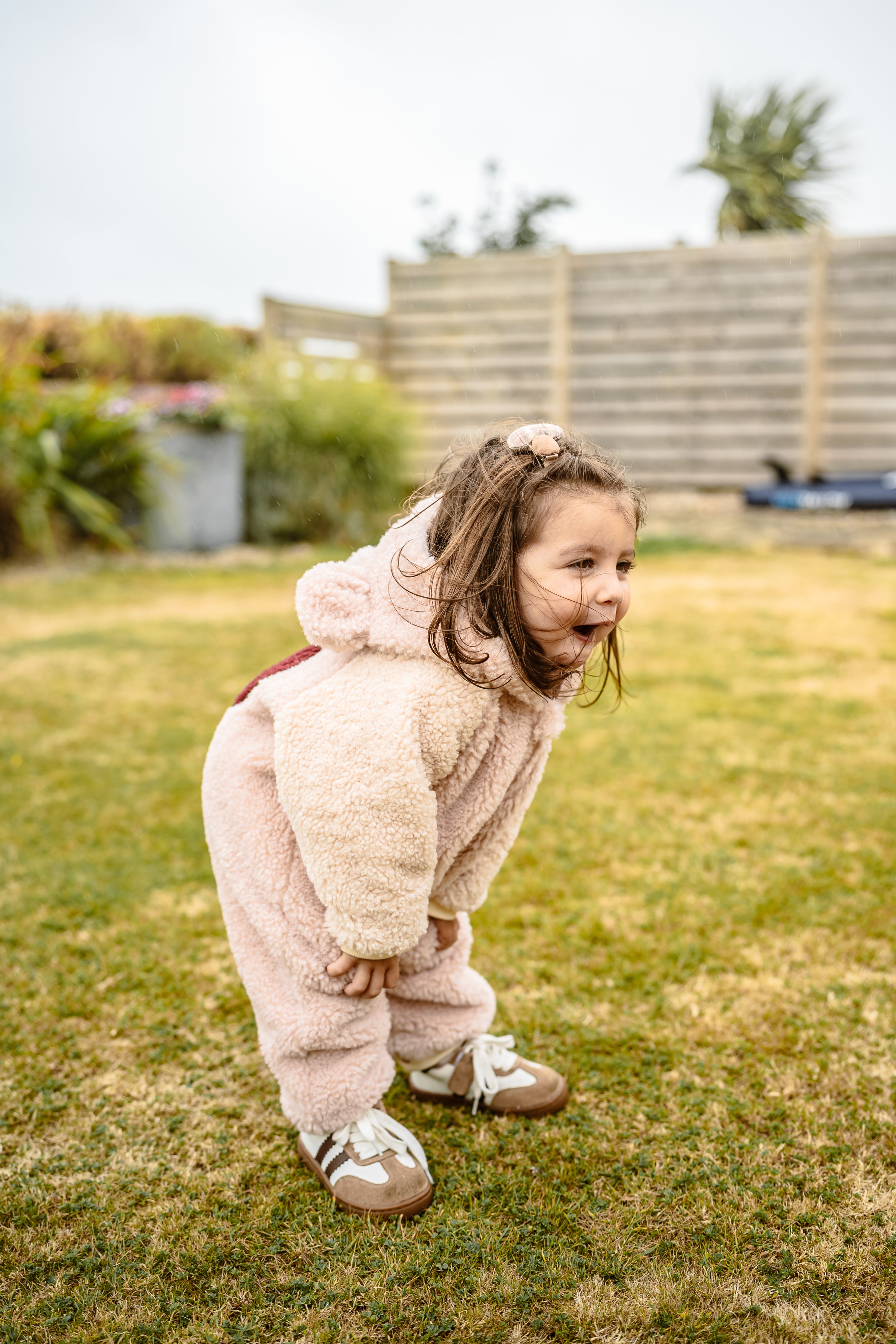 Crafted from plush sherpa fleece, this baby jumpsuit keeps your little one snug and comfortable all season long. The soft, fluffy texture feels gentle against delicate skin, while the moon and heart motifs on the back add a touch of sweetness. Designed for warmth and ease, it’s perfect for cuddly indoor days or chilly outdoor strolls.