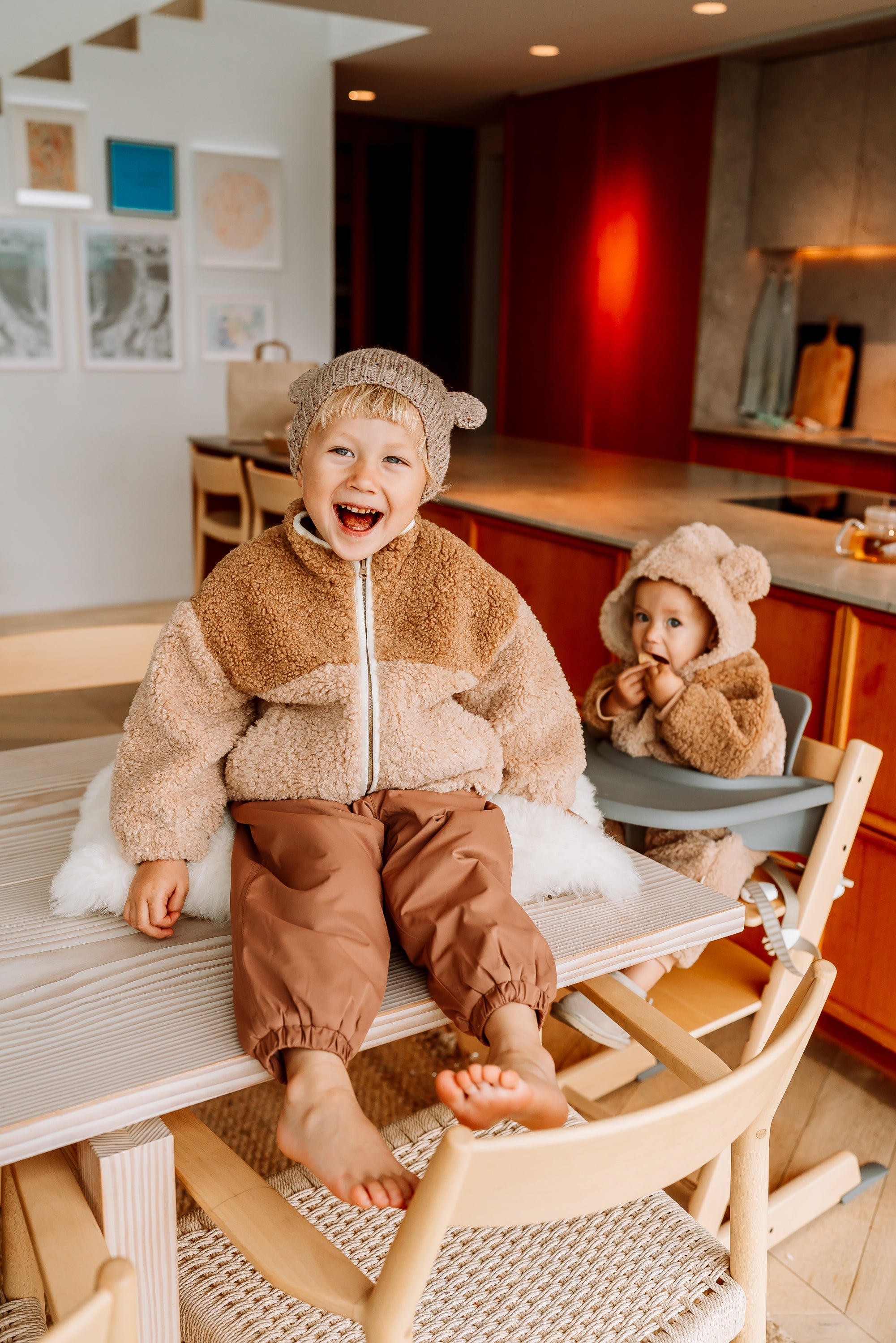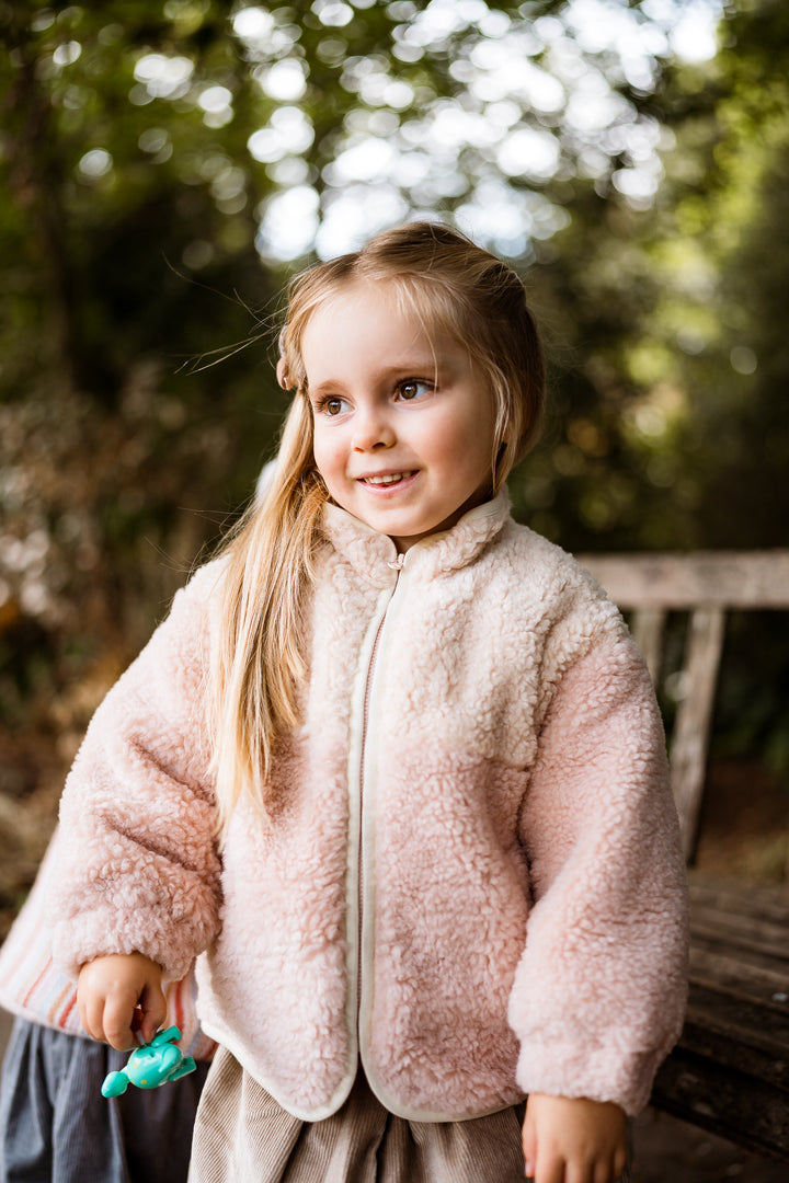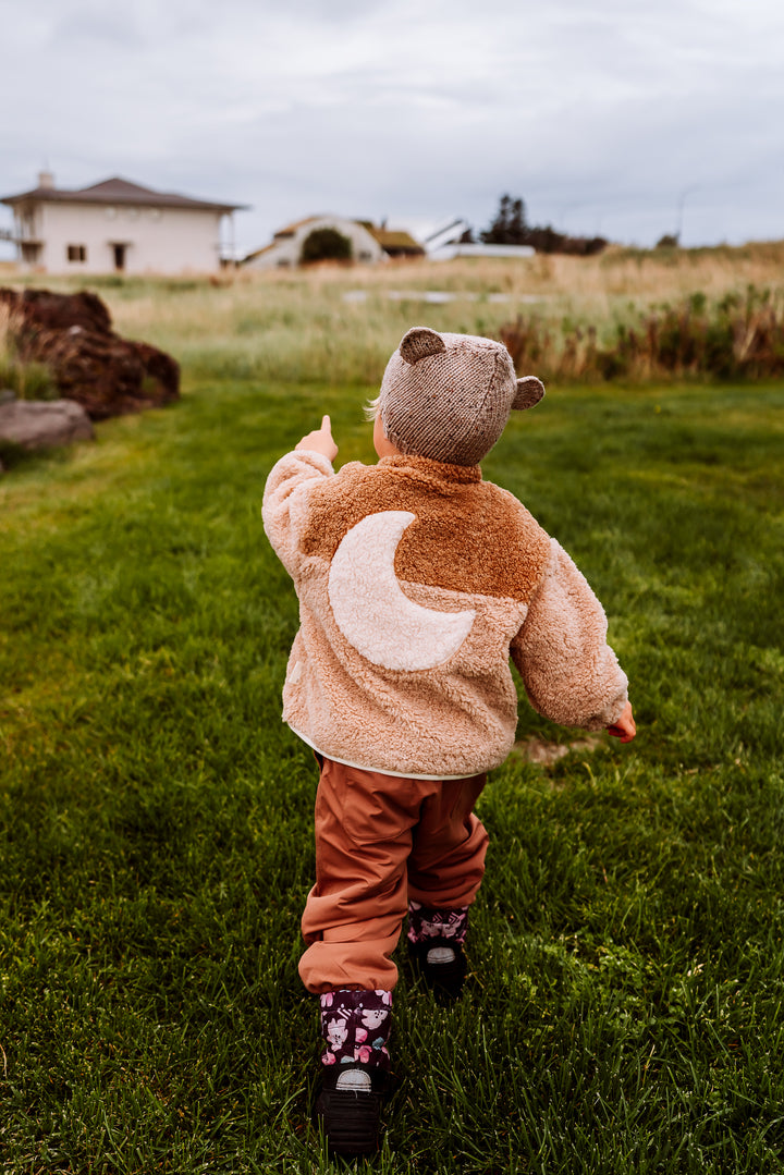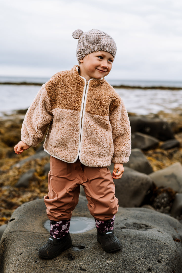 Crafted from plush sherpa fleece, this baby jacket combines warmth, softness, and playful design. The colorblock pattern adds a fun touch, while the soft texture feels gentle against delicate skin.