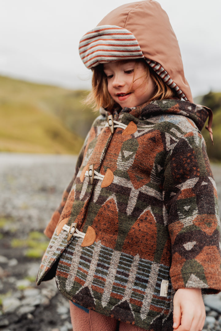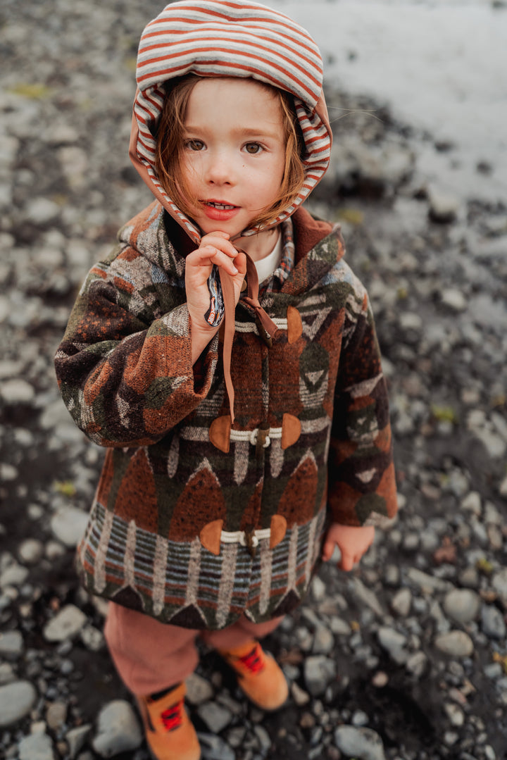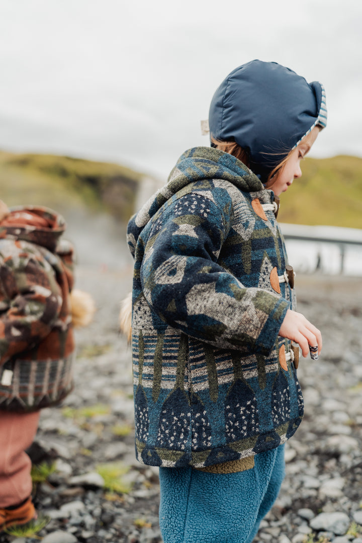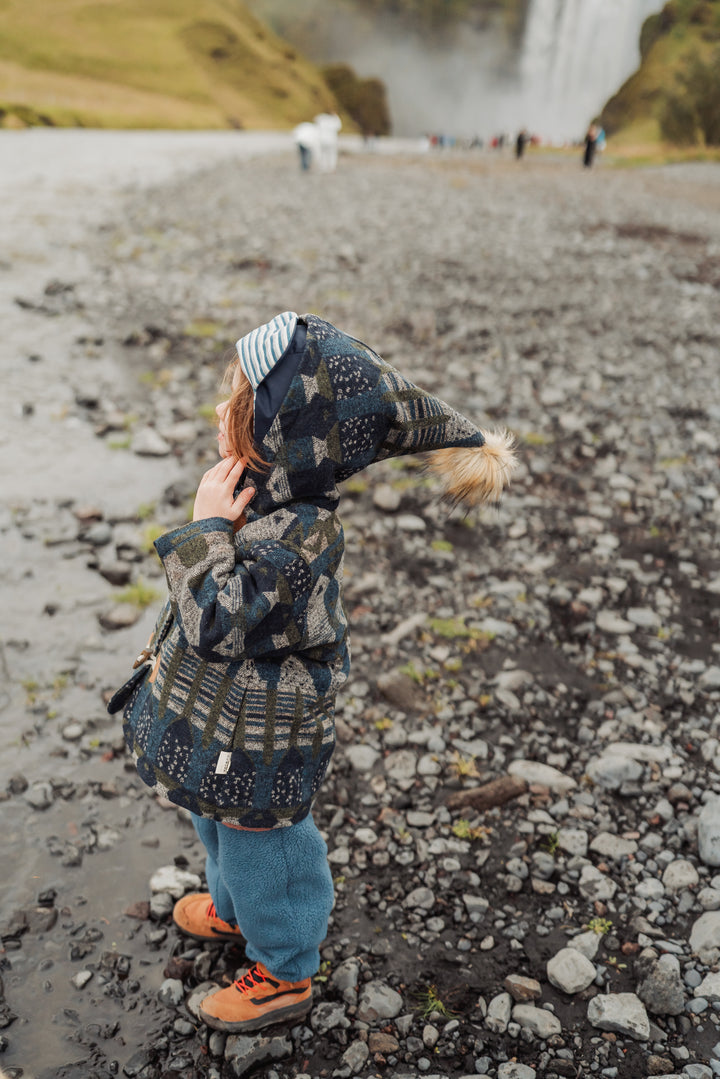 Warm and cosy wool-blend coat with a playful elf-style hood. Soft lining and structured silhouette keep little ones comfortable and stylish through autumn and winter. Perfect for layering or special outings.