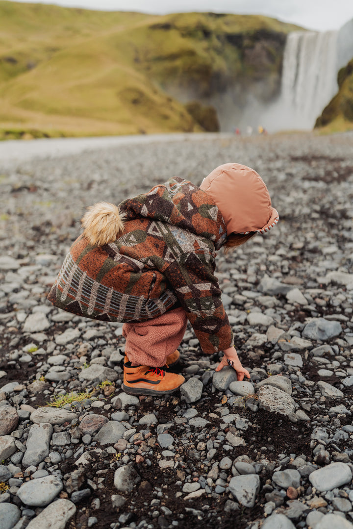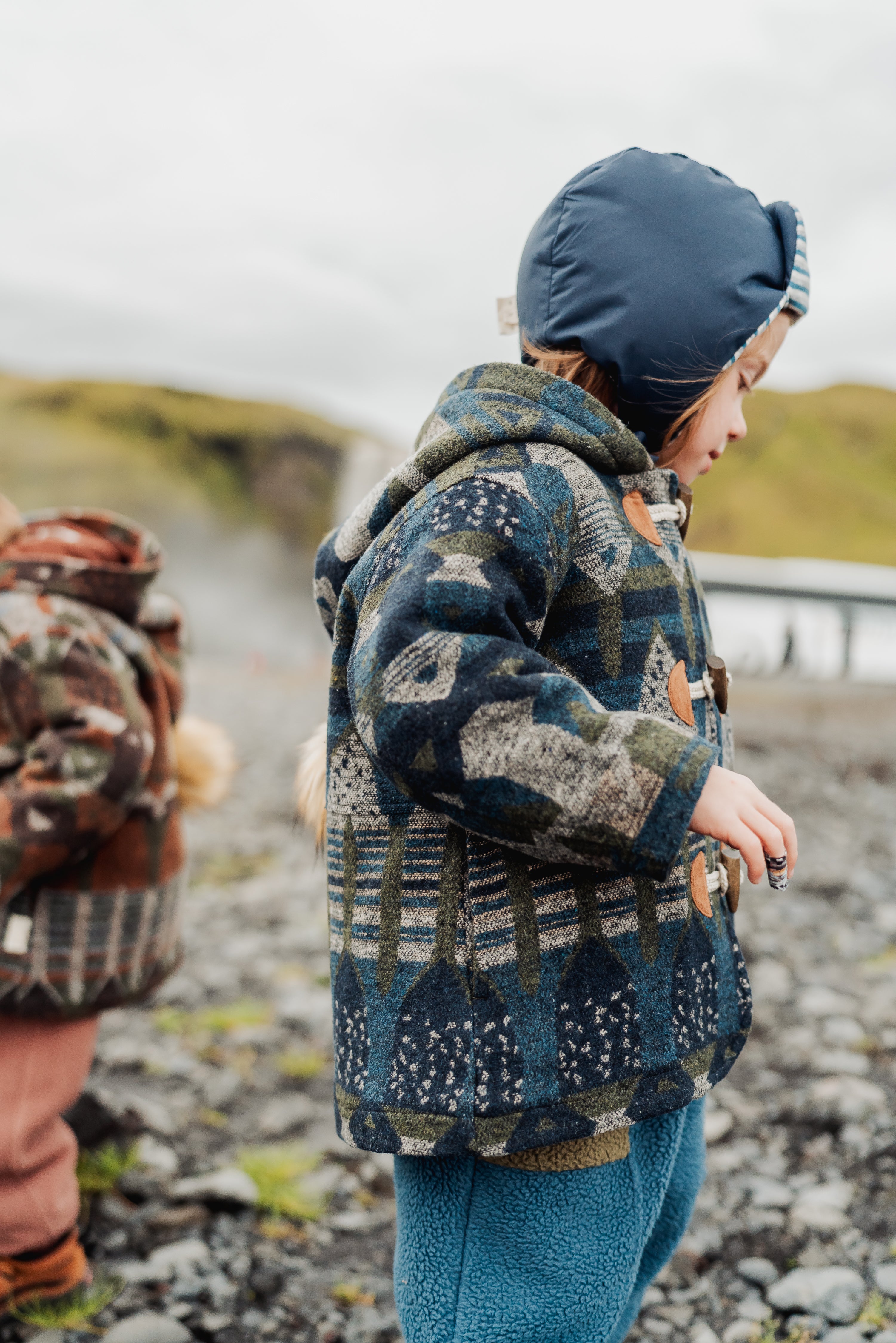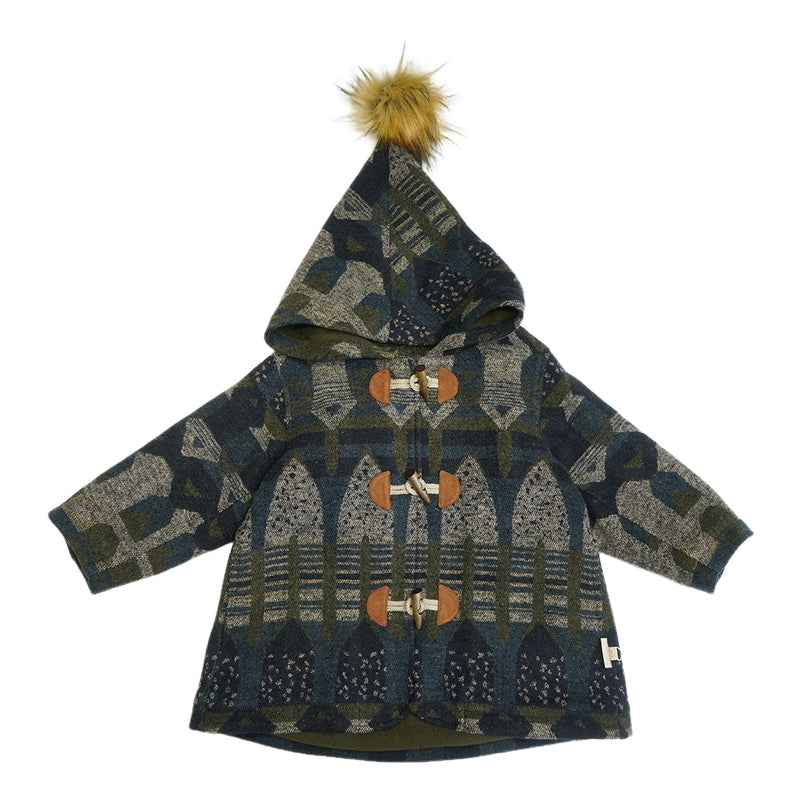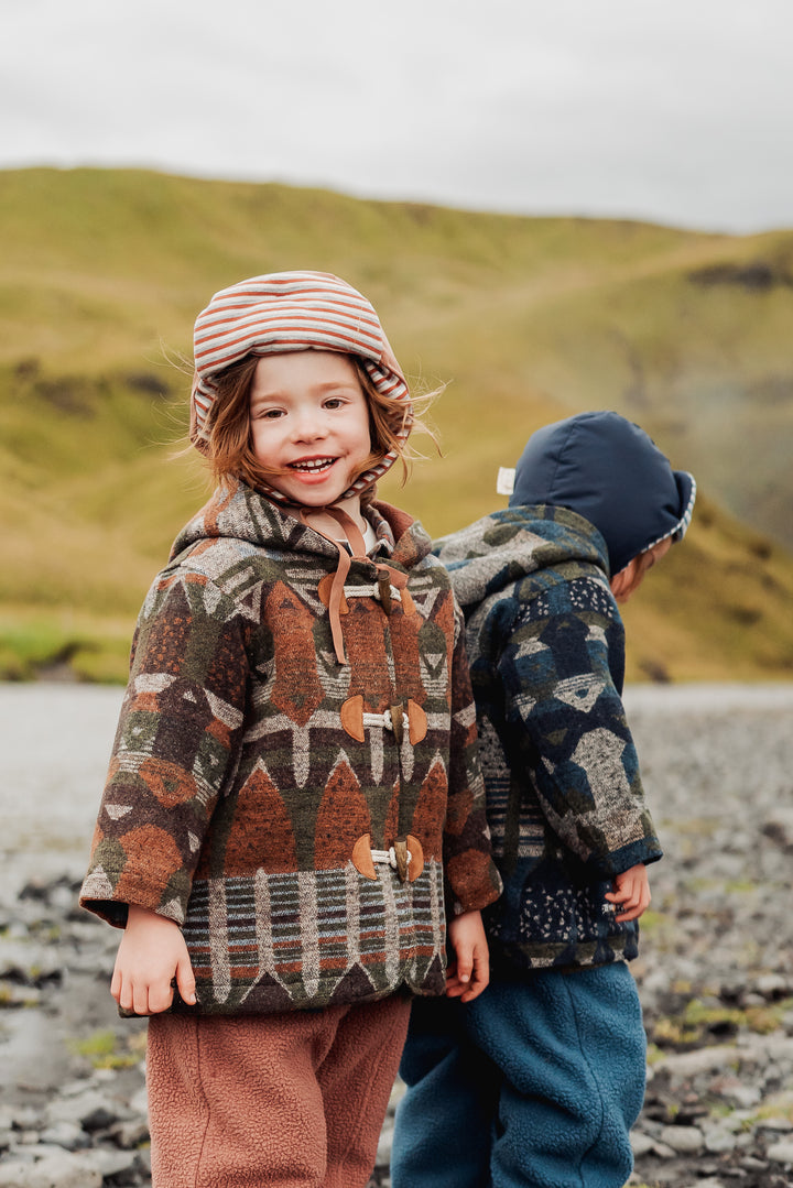 Warm and cosy wool-blend coat with a playful elf-style hood. Soft lining and structured silhouette keep little ones comfortable and stylish through autumn and winter. Perfect for layering or special outings.