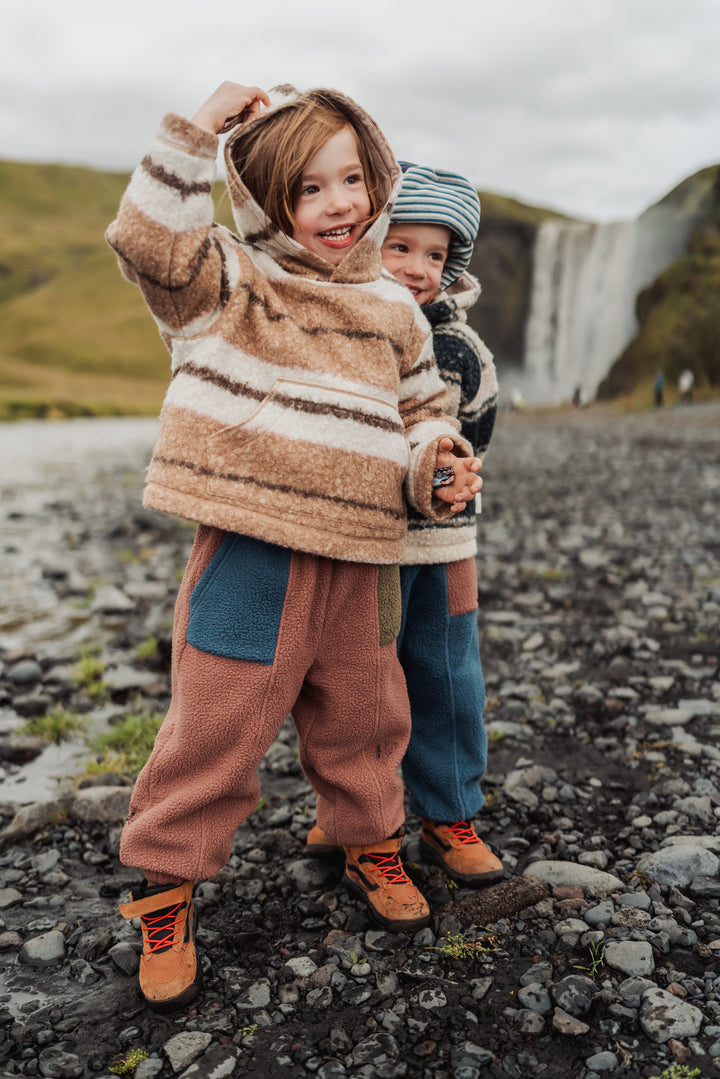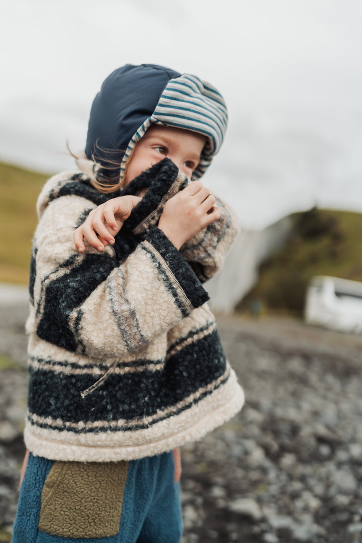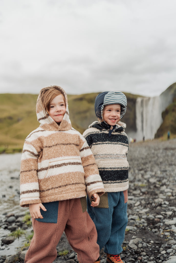 Soft and cosy hooded sweatshirt made from plush sherpa fleece with classic stripe detailing. Warm, breathable, and gentle on the skin — perfect for chilly autumn and winter days or relaxed everyday wear.