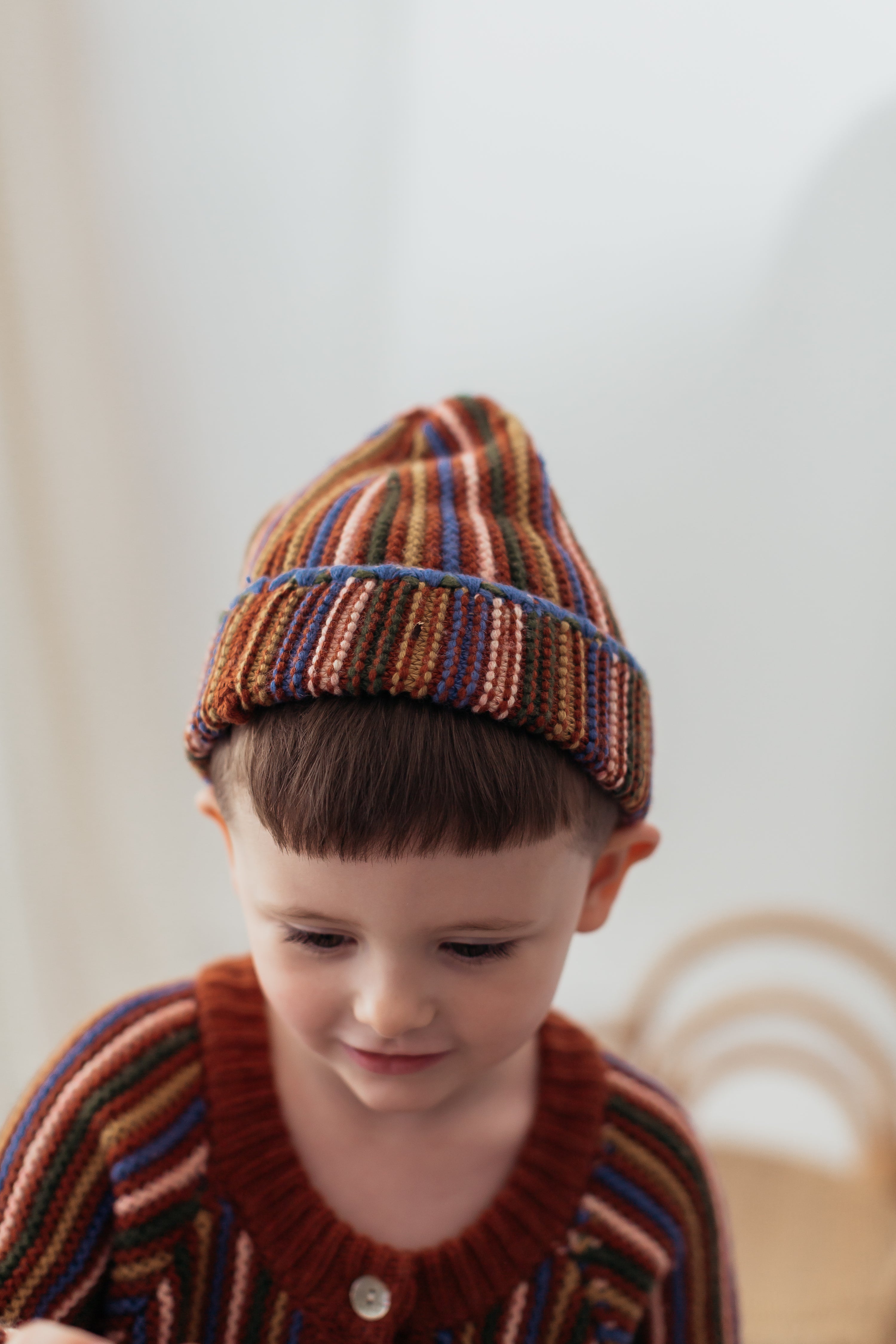 Soft and cosy Nordic-style wool-blend knit eanie that keeps little ones warm and comfortable during autumn and winter. Stretchy fit ensures easy wear and all-day comfort.