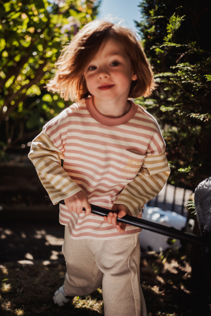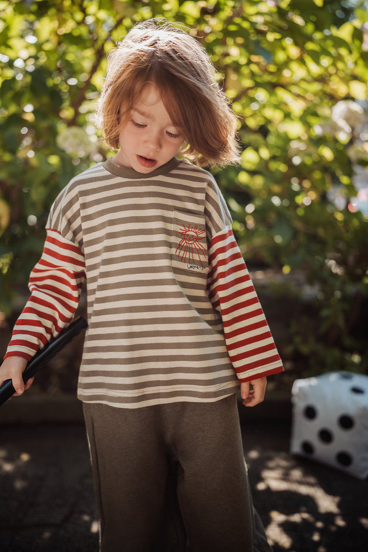 Crafted from soft, breathable cotton with a relaxed oversized fit, this striped long-sleeve tee combines playful comfort with effortless style. Designed for easy movement and layering, it’s a timeless everyday piece for little ones.
