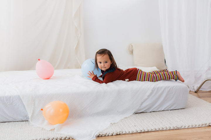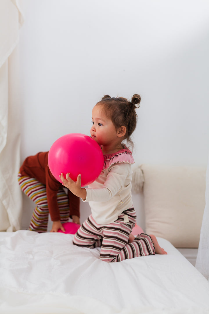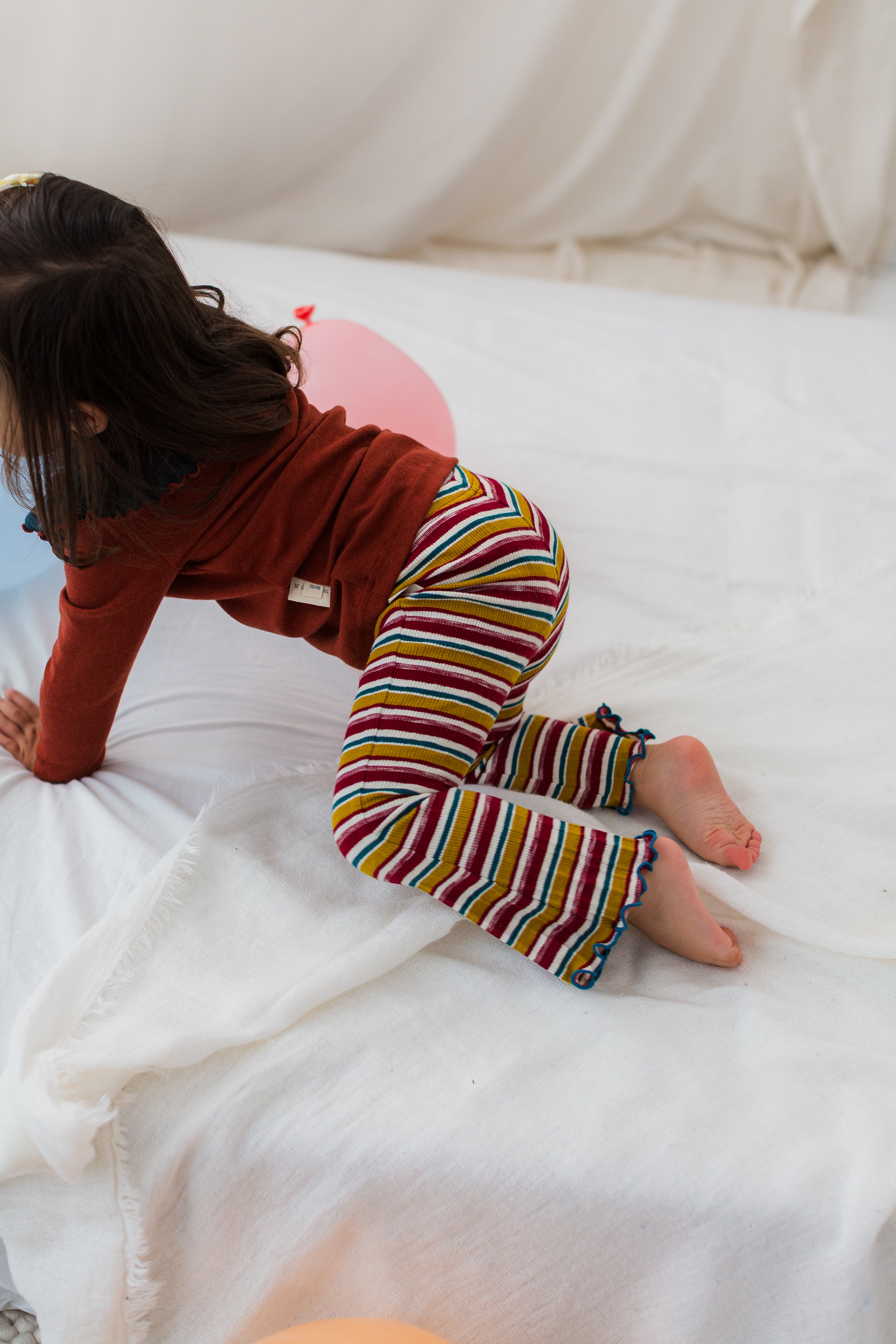 Made from yarn-dyed ribbed cotton knit, the fabric feels soft, stretchy, and gentle on delicate skin—perfect for everyday movement and all-day wear.