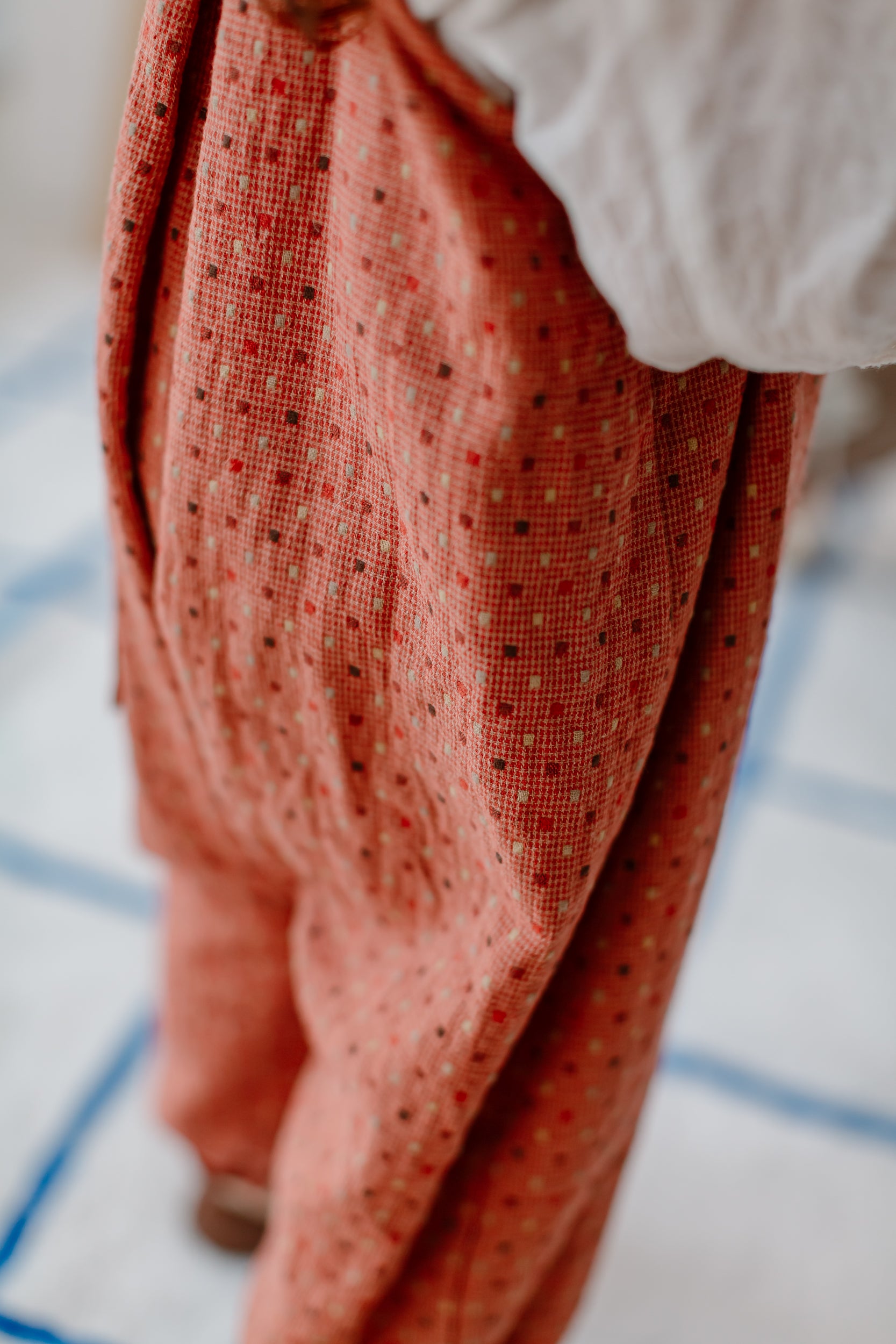 - Natural slubs or slight stiffness after washing is normal.