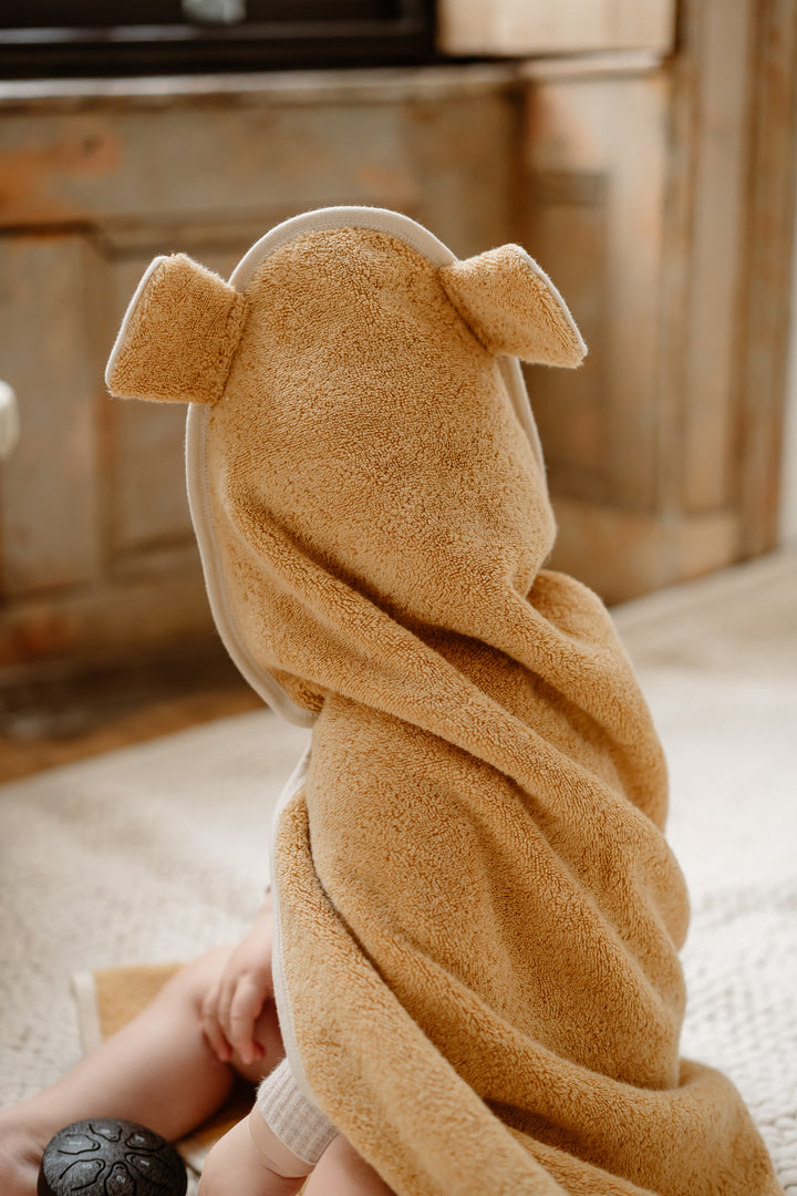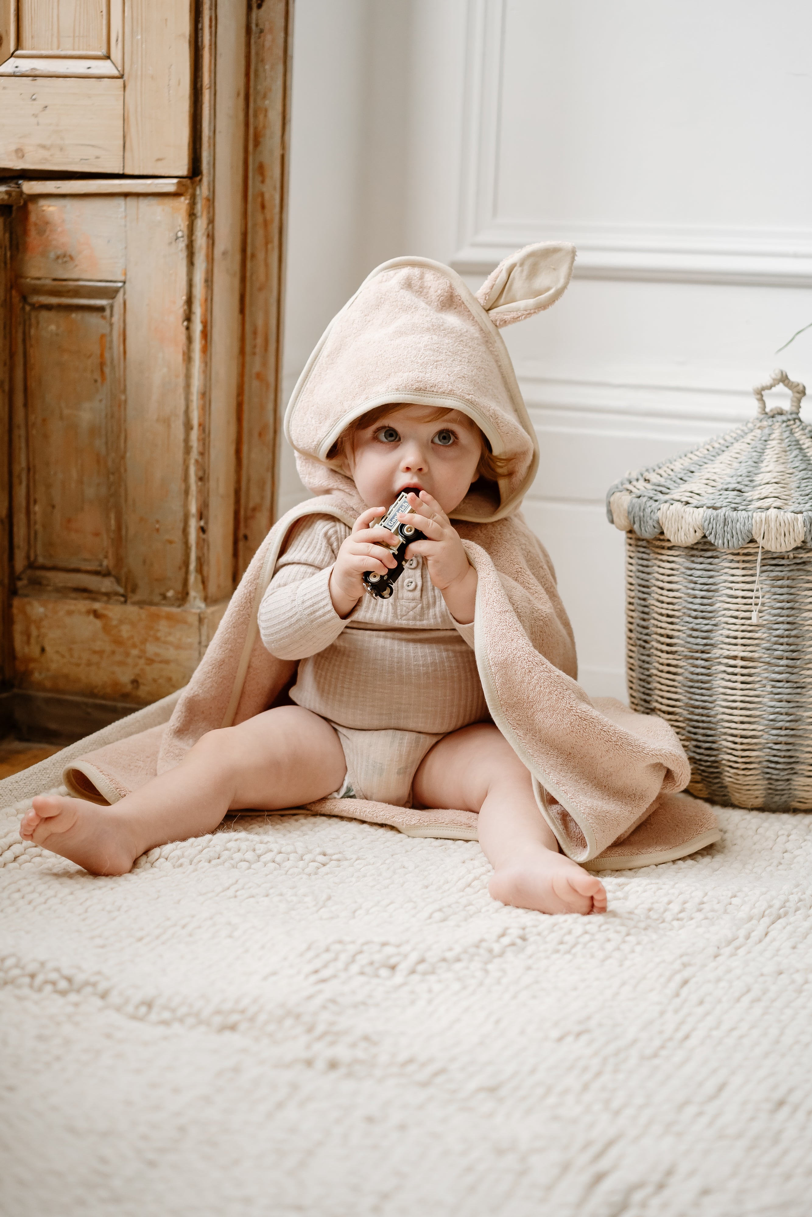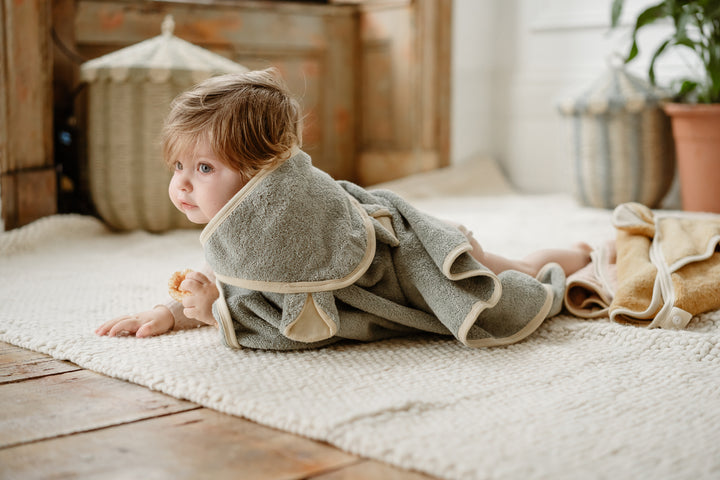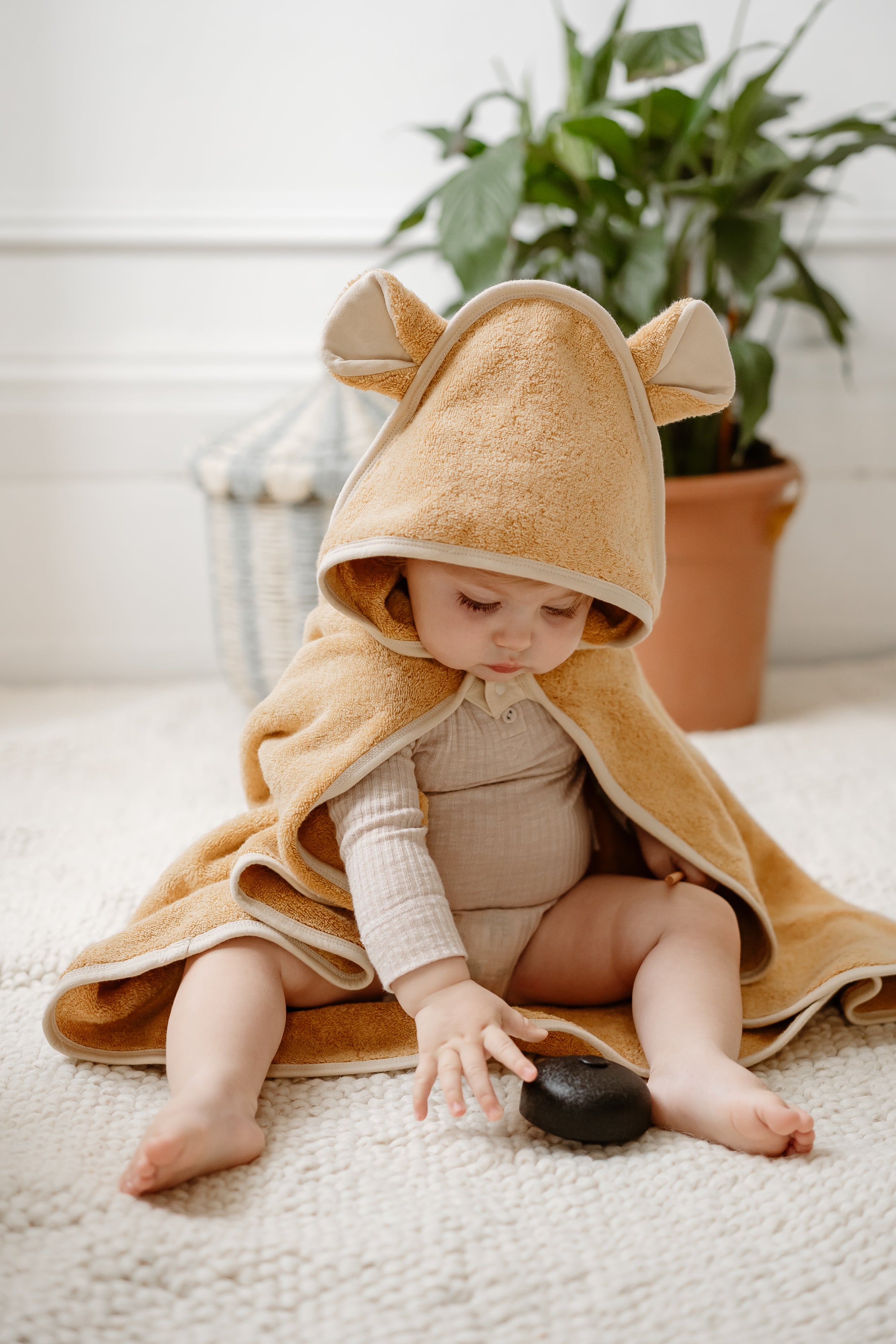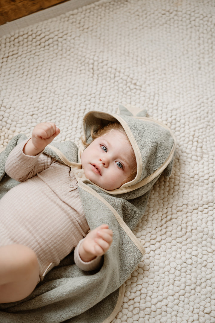 Crafted from ultra-soft organic cotton, this wearable baby towel cape combines the absorbency of a bath towel with the cozy comfort of a robe. Designed for both boys and girls, it wraps little ones in gentle warmth after bath time, swimming, or beach play.