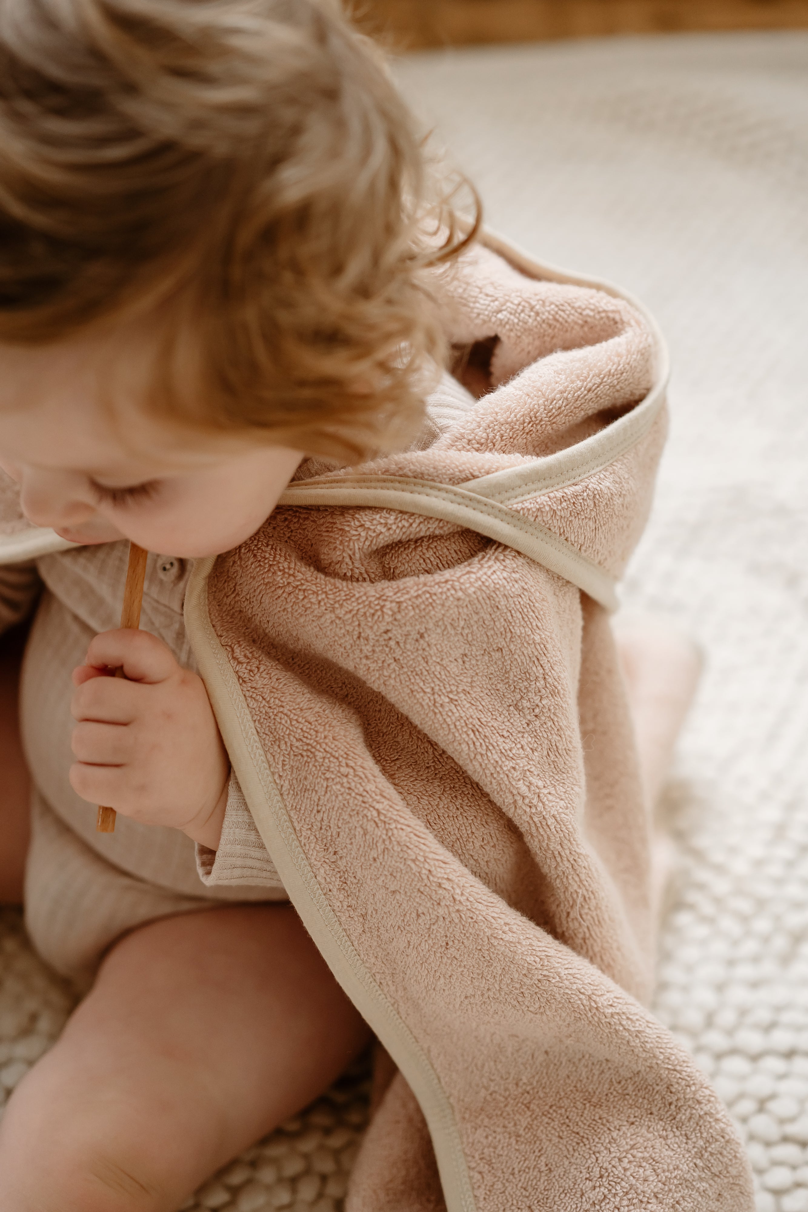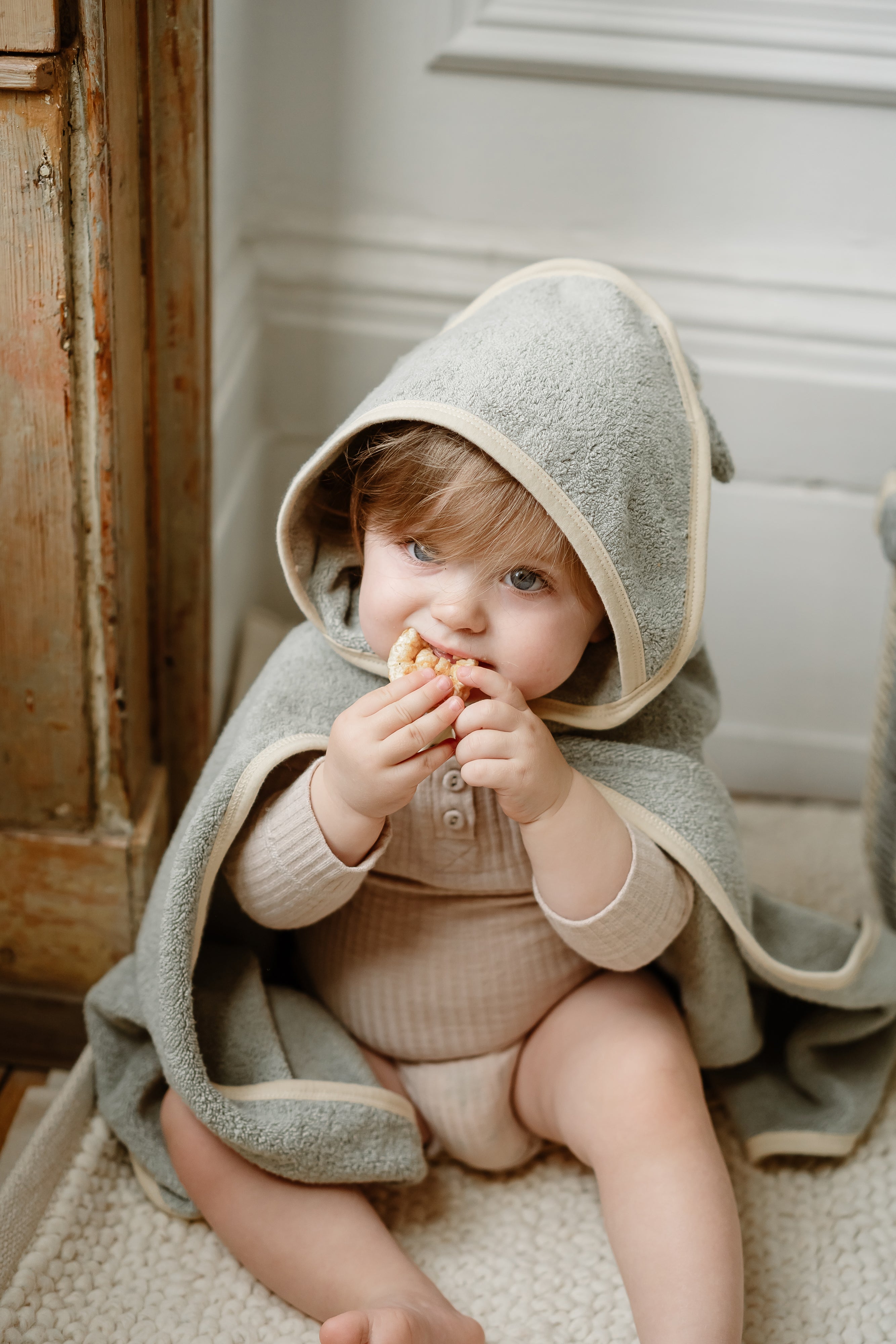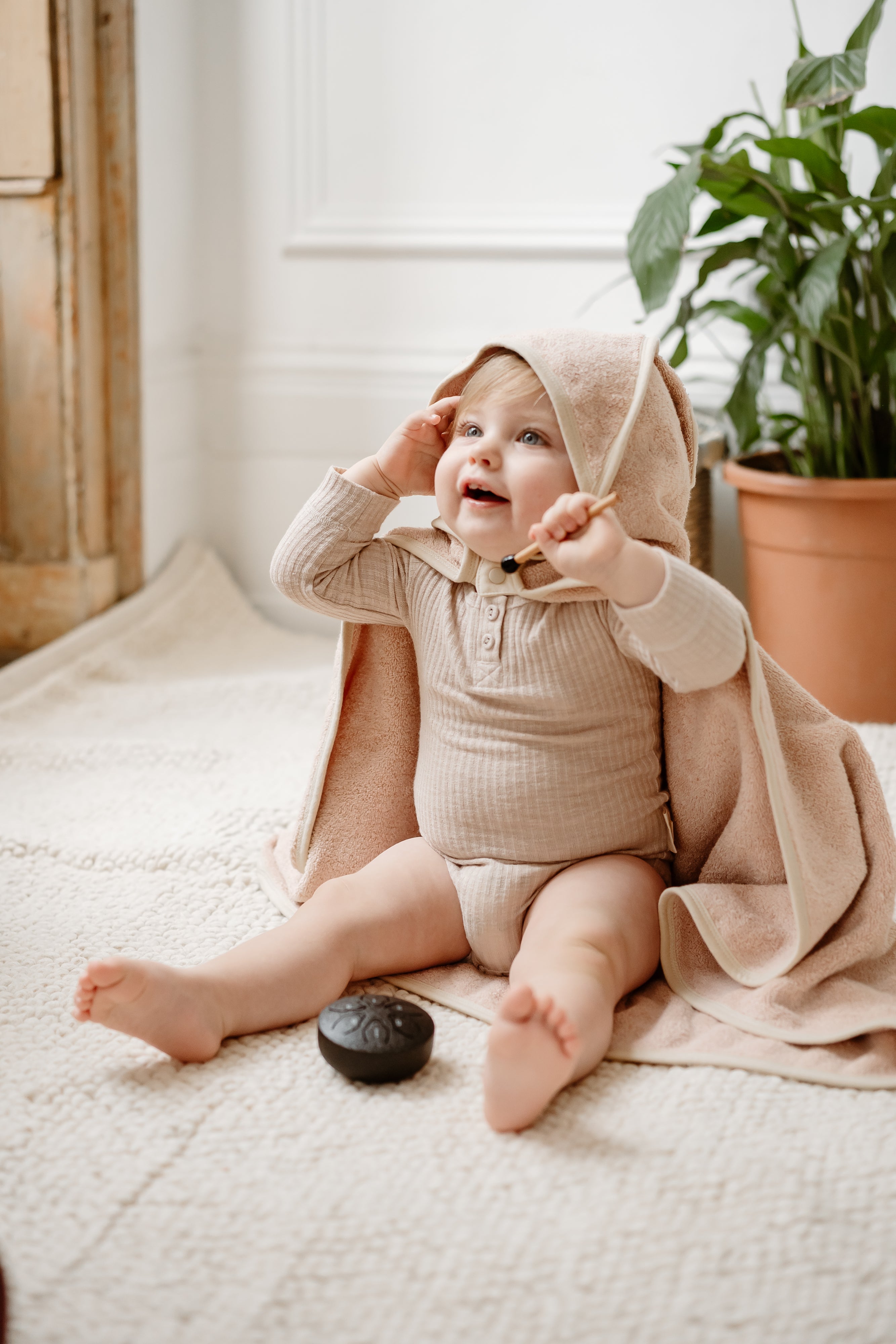 Crafted from ultra-soft organic cotton, this wearable baby towel cape combines the absorbency of a bath towel with the cozy comfort of a robe. Designed for both boys and girls, it wraps little ones in gentle warmth after bath time, swimming, or beach play.