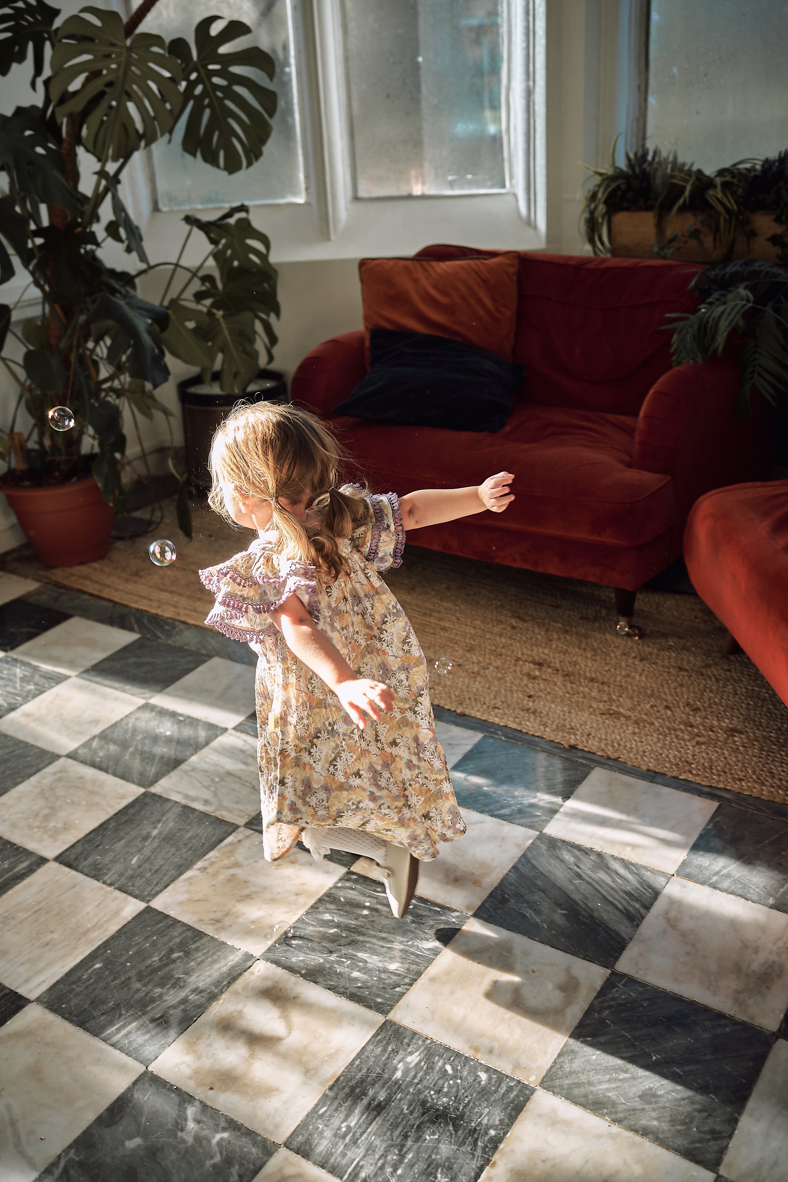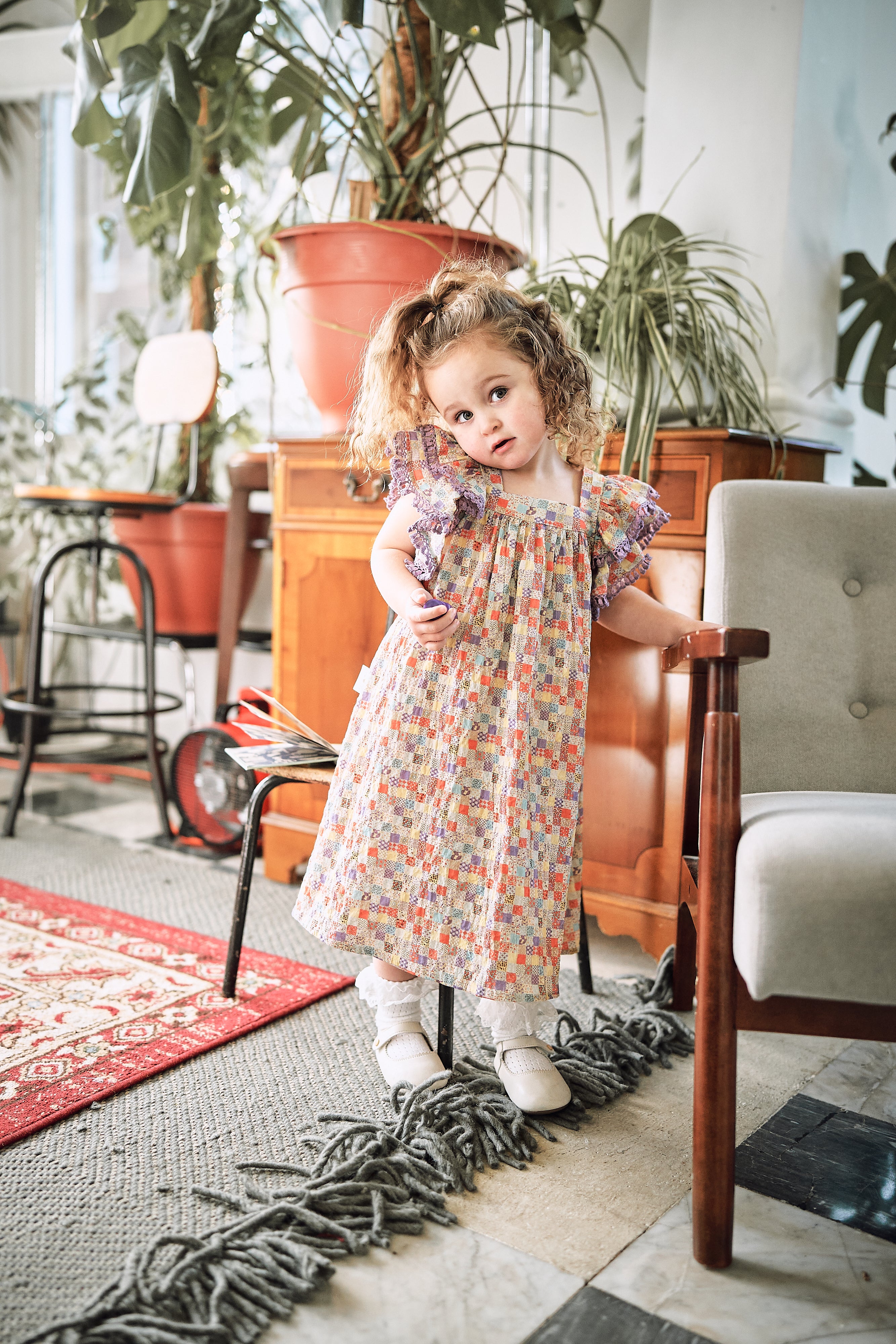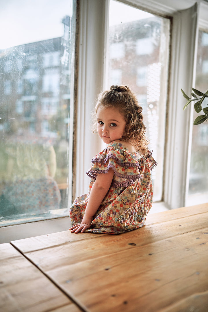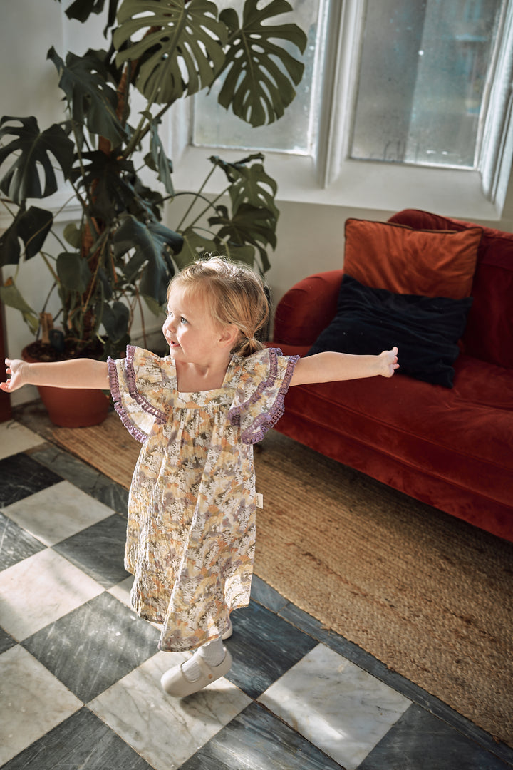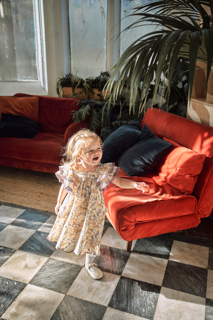 A light and airy summer dress featuring playful ruffle sleeves and a relaxed silhouette. Perfect for sunny days and family holidays, it brings effortless charm and comfort to every little girl’s wardrobe.