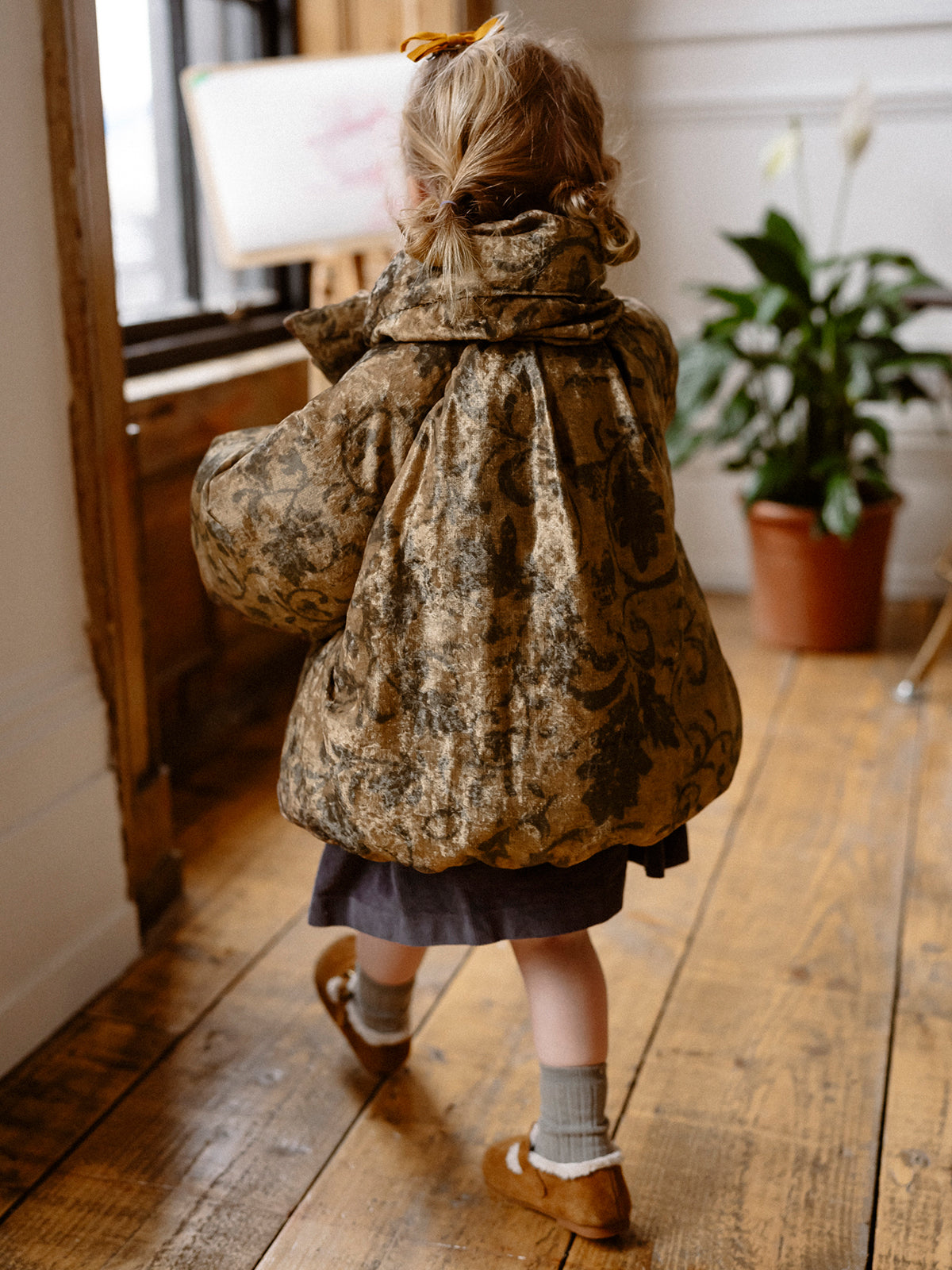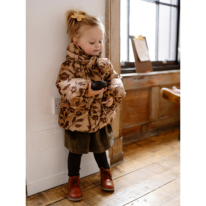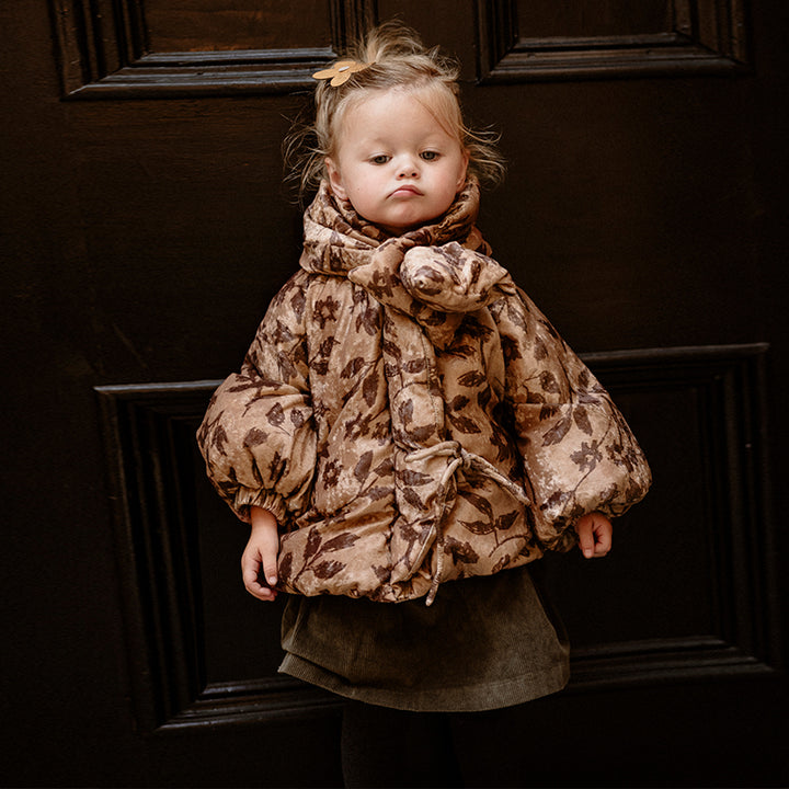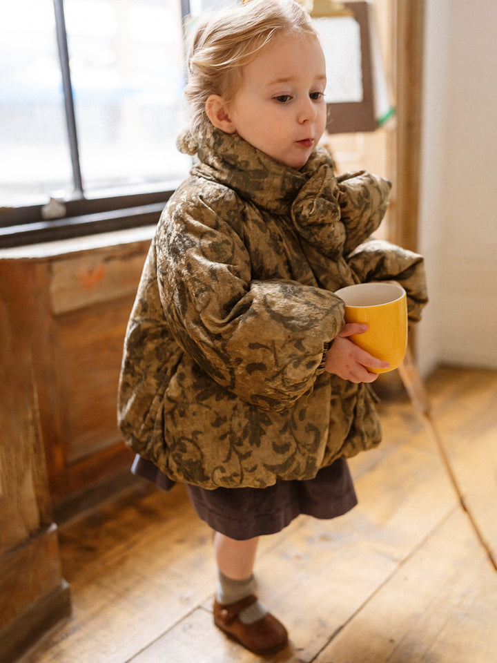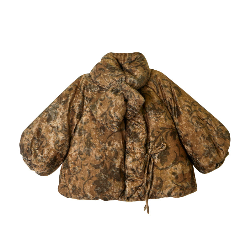 Crafted from soft velvet fabric and filled with premium 90% white duck down, this jacket offers exceptional warmth with a smooth, elegant texture. The wrap-style collar adds a vintage charm while keeping the neck comfortably protected against the cold.