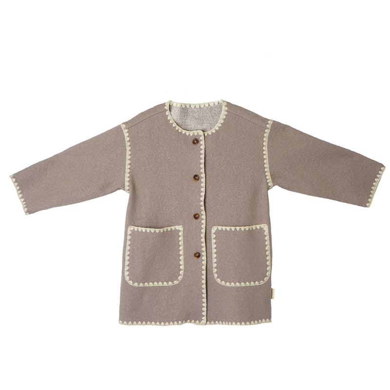 Wool Blend Round Neck Coat