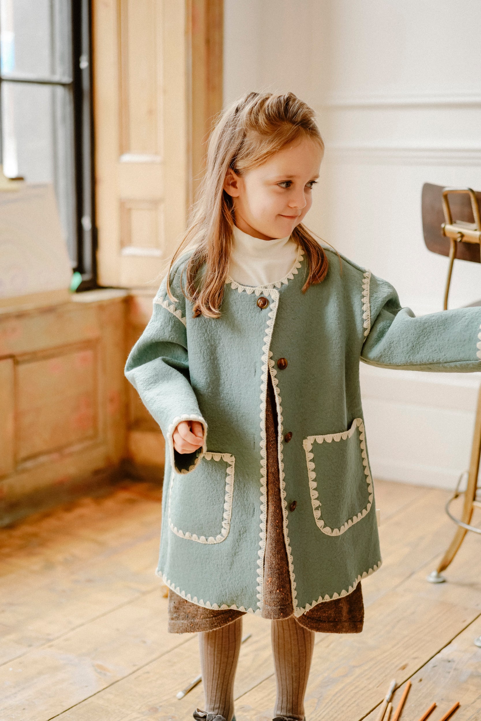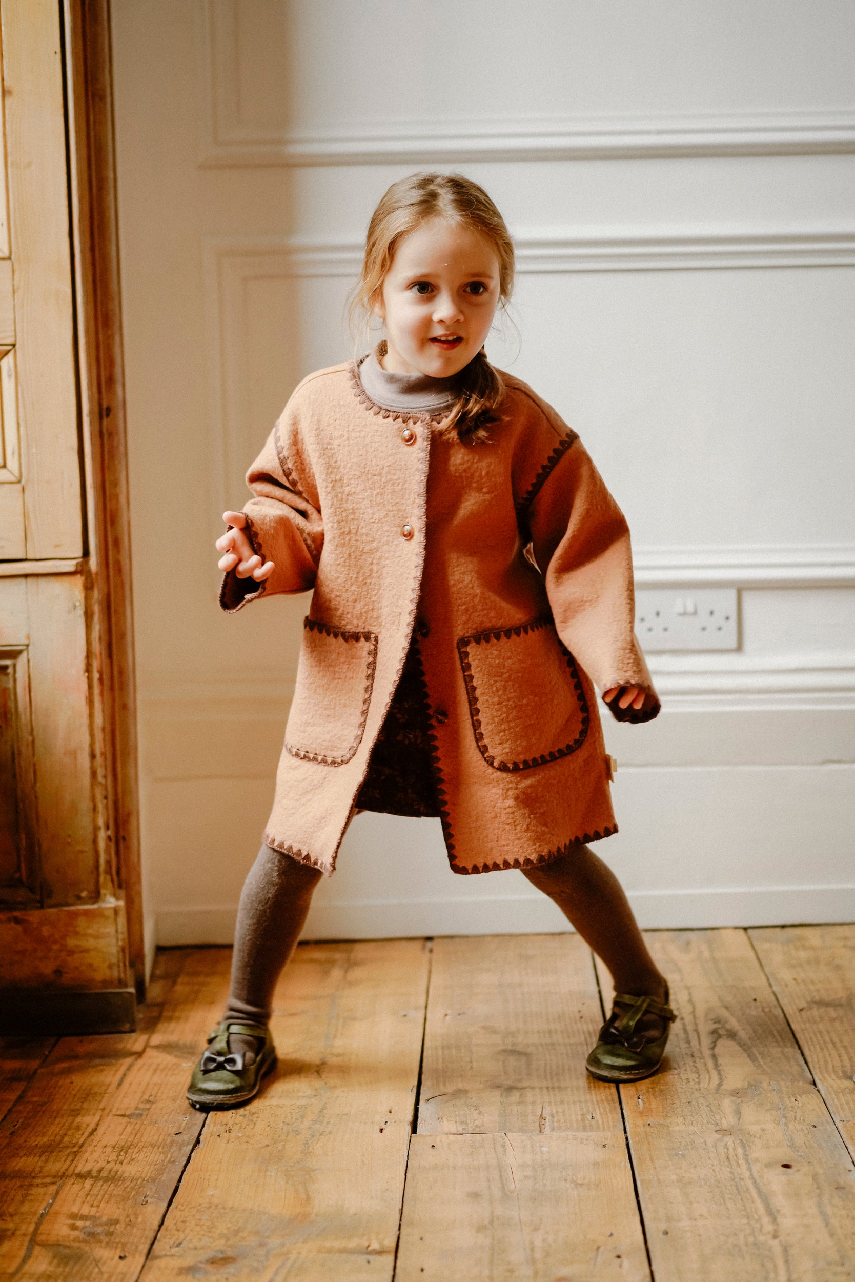 Crafted from a premium wool-blend fabric, it offers warmth, softness, and comfort during cooler months. The smooth lining ensures a gentle feel against the skin, while the structured yet lightweight design makes it ideal for everyday wear or special occasions.